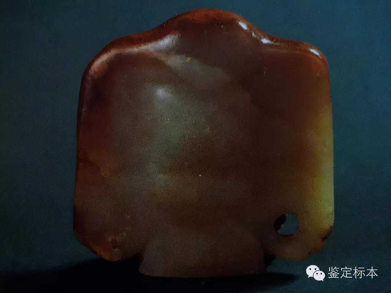 蠟質光,油潤度高,油潤從內部發出來,特別的厚重,厚重的光澤也來自於不平的表面造成的散光,散光分幾重,油潤而特別厚重,這種厚重的光澤不能仿製,只能依靠歲月的積累!!!這正是玉器複雜的光澤表現之一,這種特性也能幫助我們確定玉鷹的年代,光澤的複雜性是對一個鑒定家鑒定能力的挑戰。