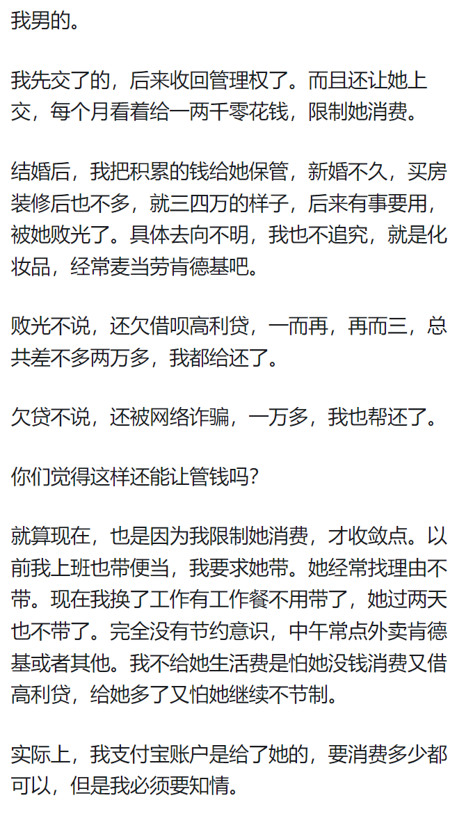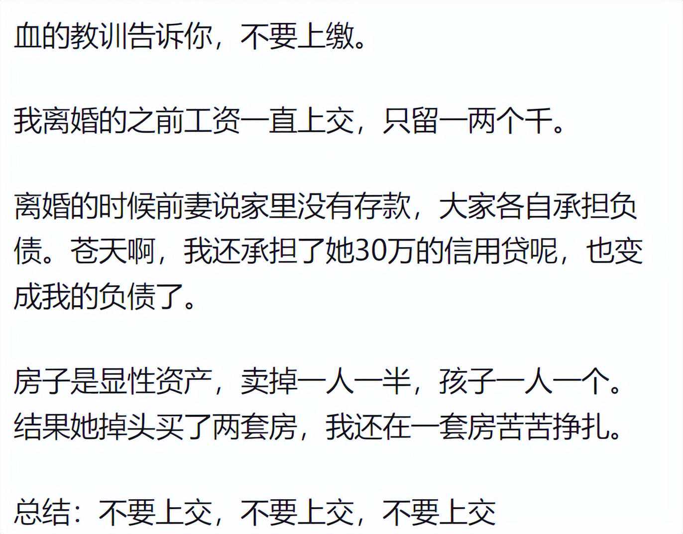 婚后你们的老公是否上交收入?网友的回答既扎心又现实!