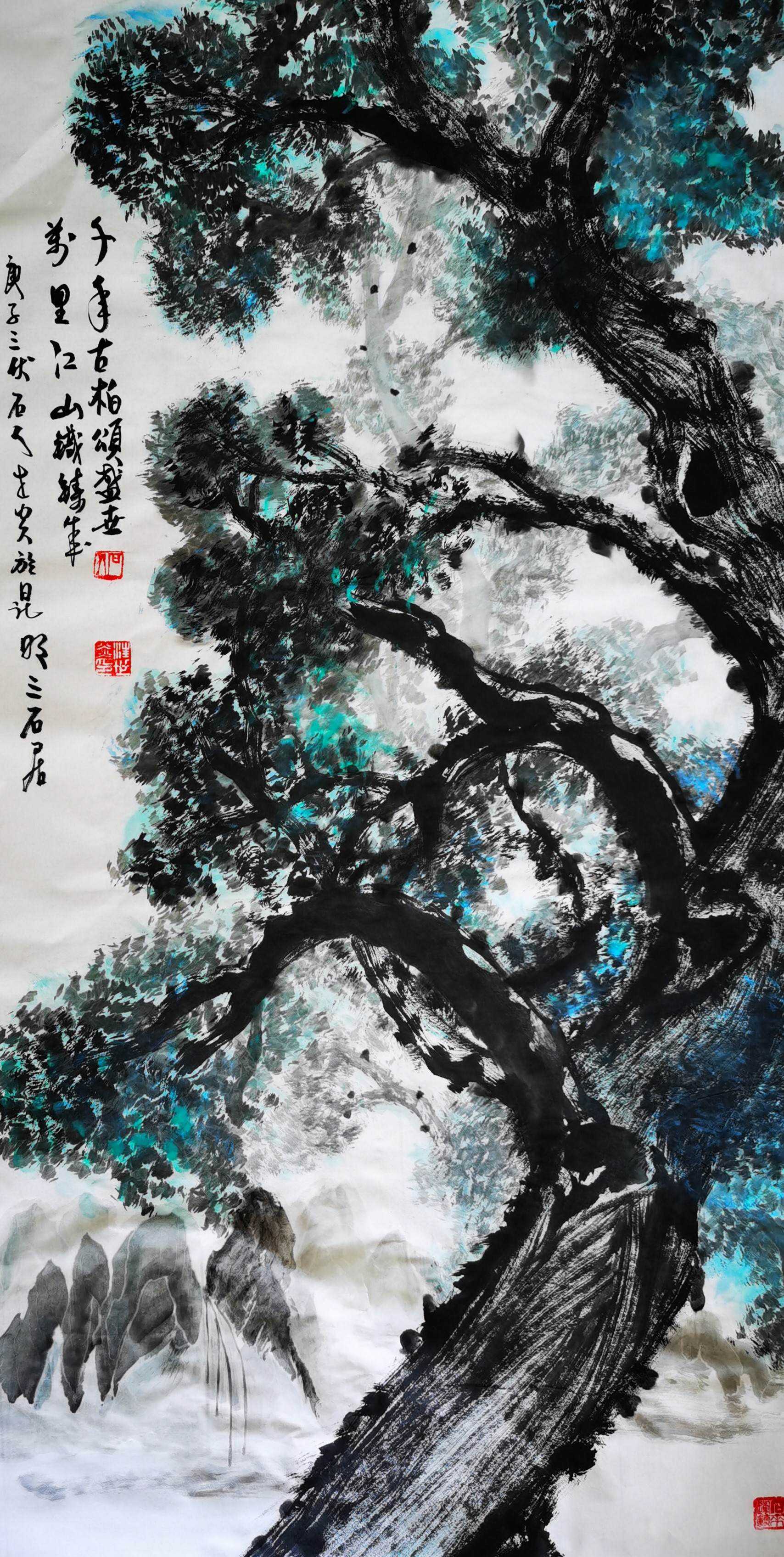 汪世炎的画作,群峰列岫,云雾氤氲,极尽丘壑之美,那虚无缥缈的雾,苍翠欲滴的松,山川秀润,笔墨华滋,无论神韵气象,应物象形给人以无比的震撼。将书法的用笔、用墨、结体及章法等理念融入绘画,或空间留白,或淡墨轻飘,或层层渲染,不惜多次复加,干净飘逸,浑厚滋润。汪世炎的许多作品都以写生为基础,掌握对象的结构特征与变化的规律,通过想象大胆取舍,用精简的笔墨描绘瞬间动态,其作品意境清新。