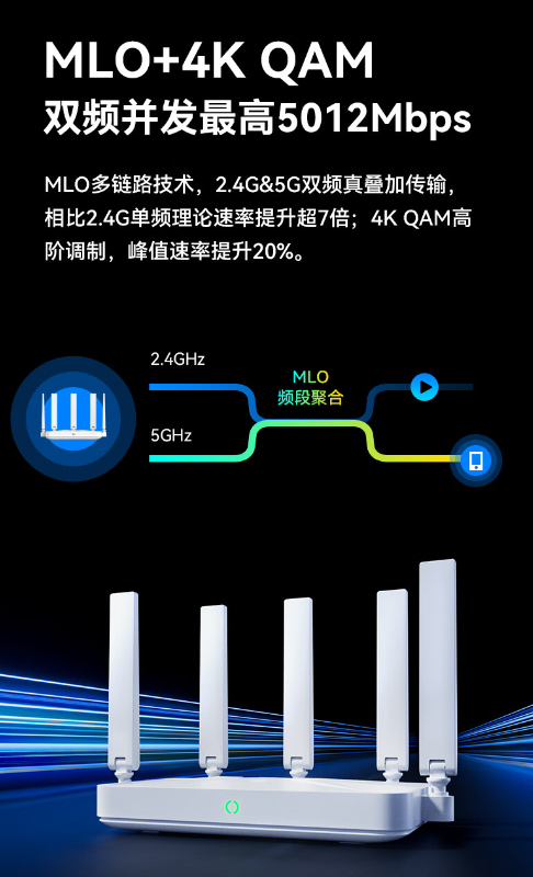 在硬件配置上,中兴巡天BE5100自研133芯片与MTK7991A的组合堪称黄金搭配,芯片带机量高达512台,即便是多个设备端连接,也能保持出色的信号传输速率。同时,中兴巡天BE5100采用2.0版巡天天线组,将5根天线升级为巡天智能AI天线,有效覆盖路由器各个方向,大大提升了覆盖范围,让用户在卫生间、阳台等信号相对较弱的地方也能够拥有高速网络连接。