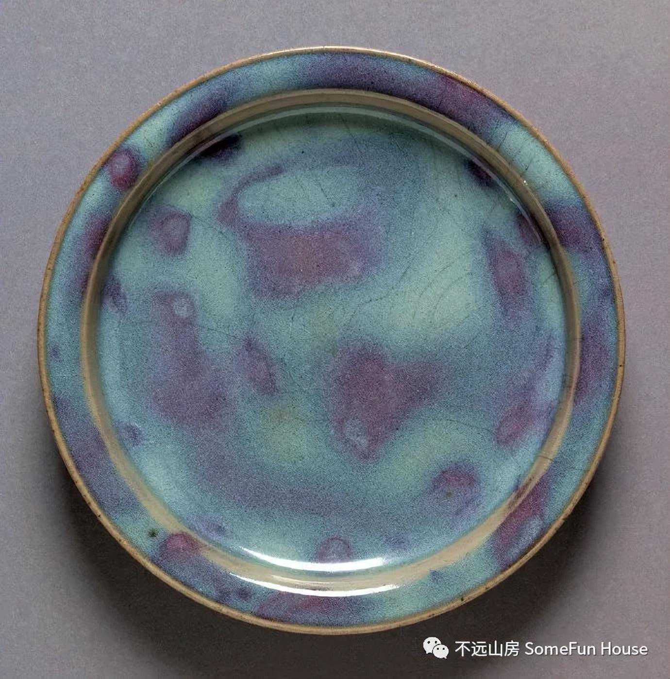 大英博物馆藏金代钧窑天青釉红斑折沿盘