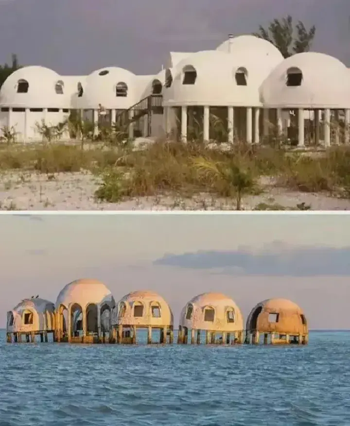 12全球升温冰川融,海平面攀升,有些原本在陆地上的建筑,如今泡在了海水里。
