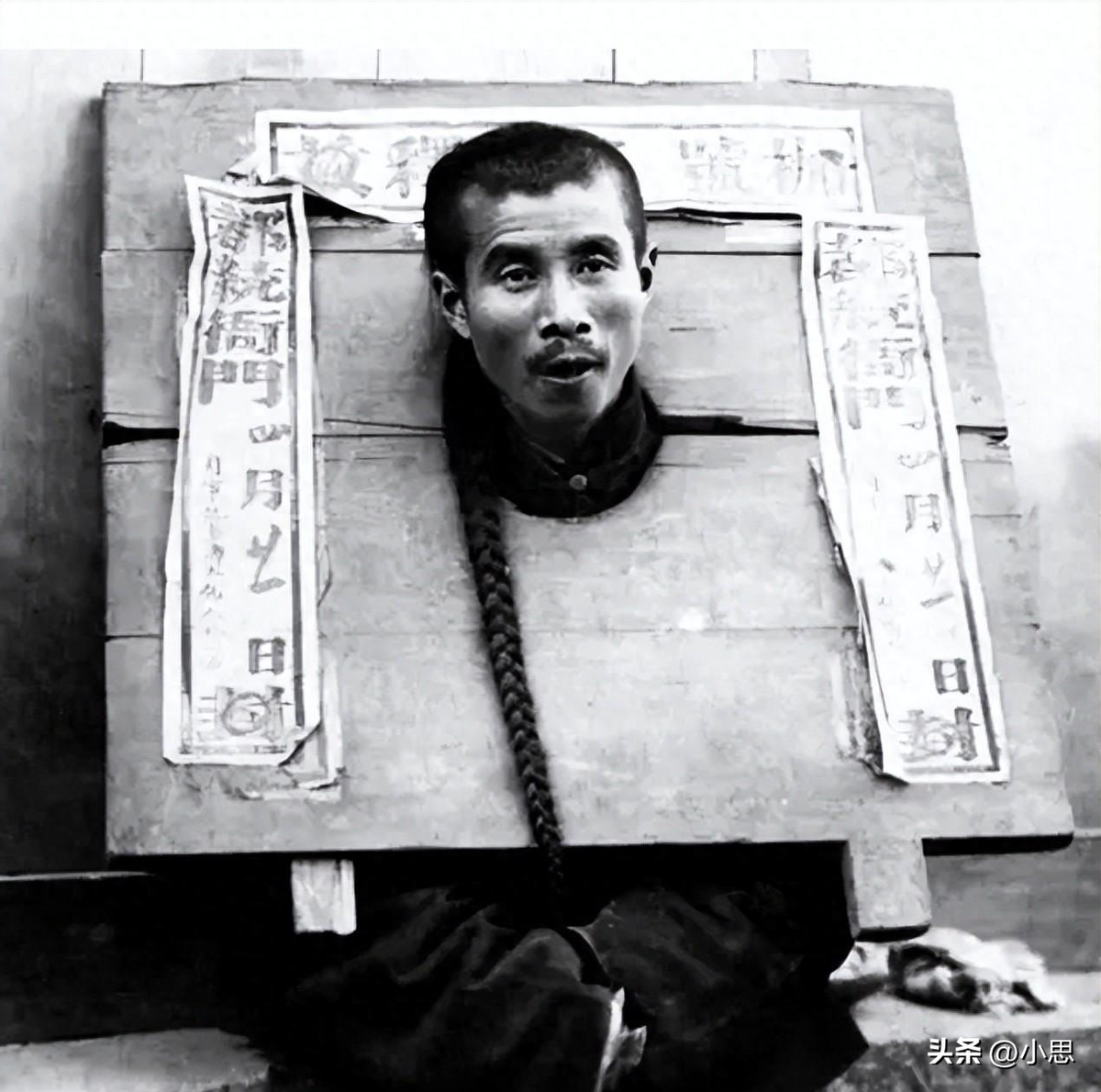 这是当时的一个囚犯,此刻他正戴着头铐恍惚的望着前方