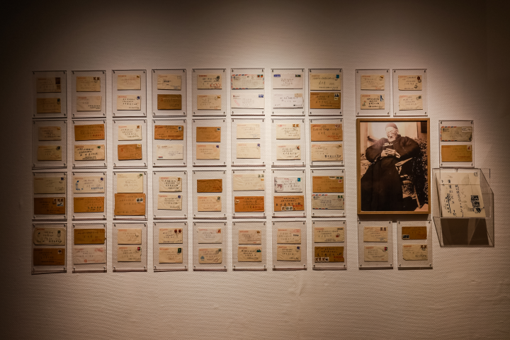 为了更好地搜集资料、展开研究,王中秀联系了大量与黄宾虹相关的人士,其中既包括黄宾虹的家属子女,也包括黄宾虹的弟子和追随者、黄宾虹研究者、博物馆工作人员等。他们共同组成了一个互助朋友圈,谁在拍卖会等地方发现了没见过的宾翁作品或资料,就会分享给王中秀。展览现场,王中秀的部分通讯信封就贴满了一面墙。