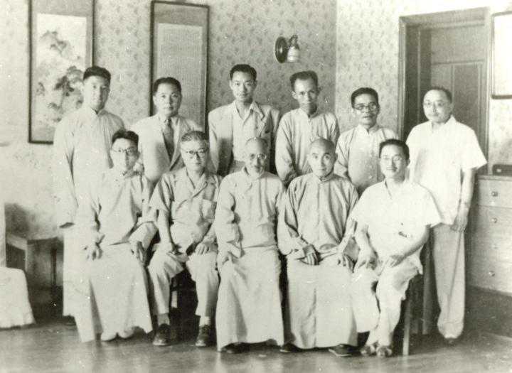 1948年黄宾虹南归杭州途经上海时与友人的合影(一排左三为黄宾虹,二排左三为赵志钧),中国美术学院近现代美术文献研究中心藏