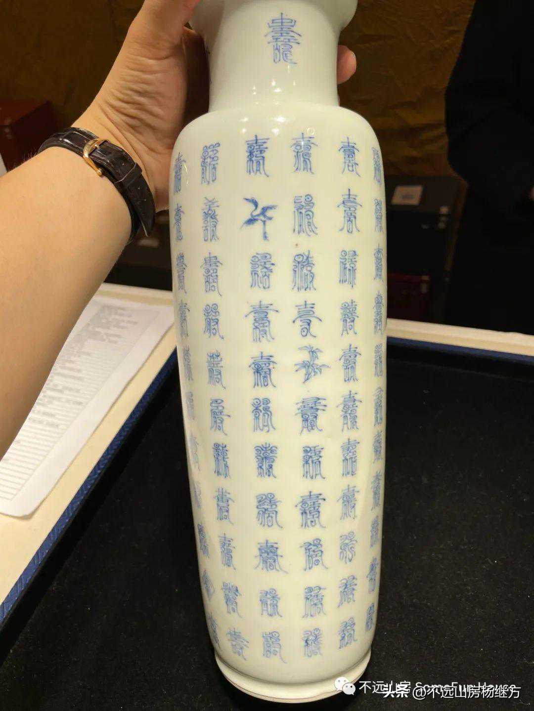 中贸圣佳2021春的康熙青花百寿图棒槌瓶,高36厘米