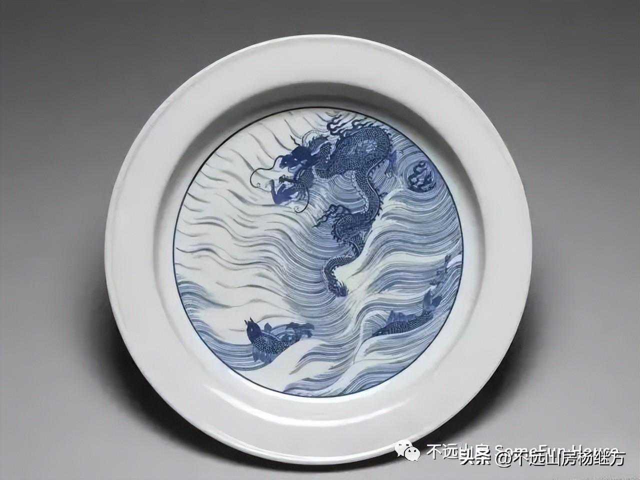 上海博物馆藏康熙官窑青花釉里红海水龙纹瓷盘