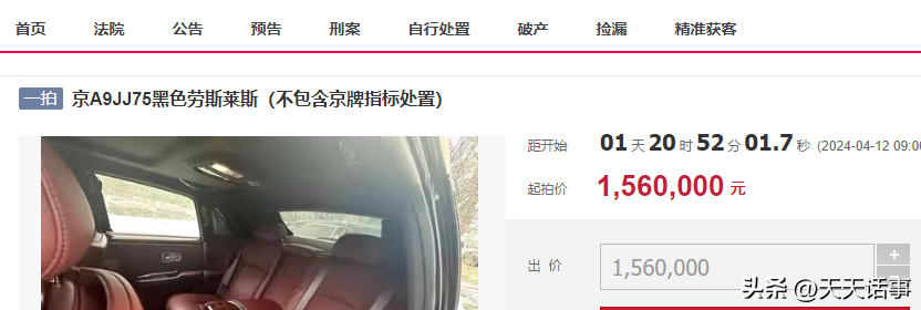 这辆北京牌的劳斯莱斯是四辆车中,最特别的一辆,这是一辆因为车辆买卖纠纷而被拍卖的车。此前,这辆劳斯莱斯在二手车市场进行拍卖,2020年的时候购车人花了239万元买了这辆车,但是后来在2021年的时候,购车人想把这车卖的时候才发现,这辆劳斯莱斯是一辆发生过重大事故的车辆,而当初买的时候,二手车商以及原车主都没有告诉购车人,只说说车龄有挂剐蹭,有两个地方补过油漆,没有发生过重大事故。最终购车人就被原车主和二手车商给告了,退还购车款239万元,同时按照购车款三倍赔偿,所以一波买卖下来,购车者可以说是大赚七百多万元。。然后,就出现了这辆车被拍卖了,用拍卖的钱赔偿购车者。