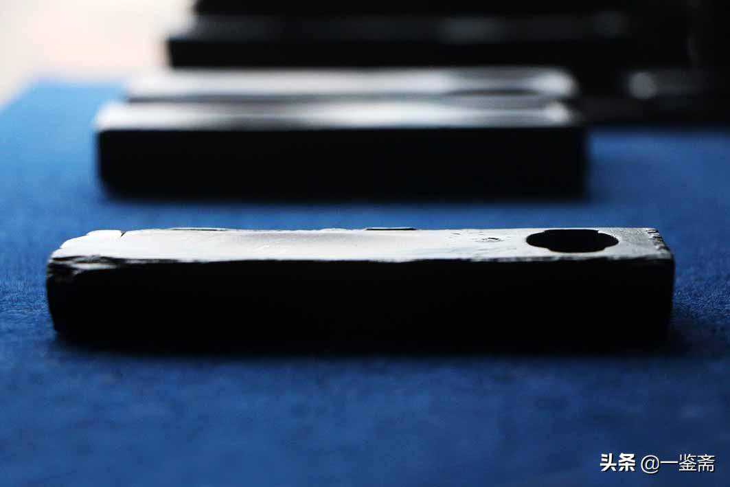 下图通过侧面照可见,造型上明显呈上阔下窄,这是宋砚形制的一个特征。
