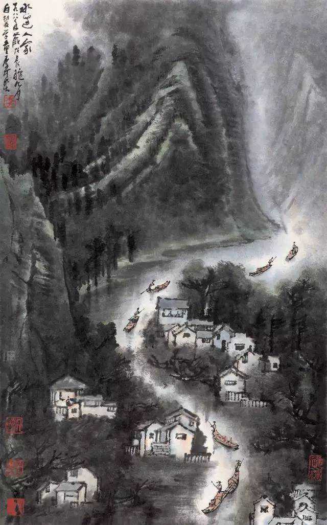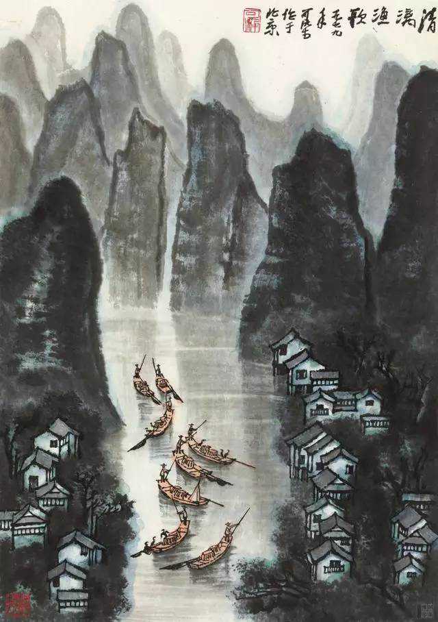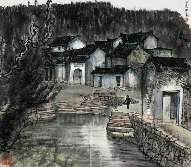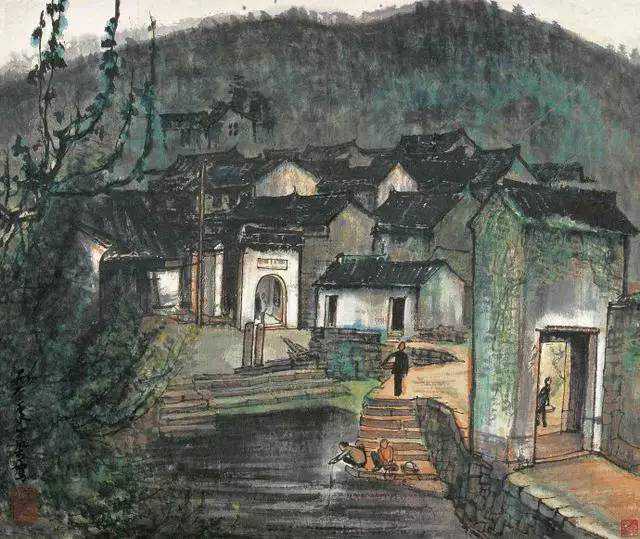 李可染1988年作《水边人家》84.2cm×52.6cm