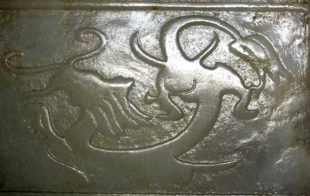 另面上部也是牌位,丹墀和祥云,中间象纹,下部是龙纹,底部为双凤。