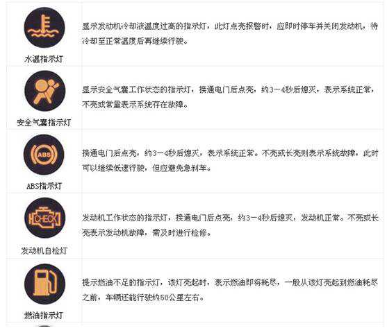 故障灯说明:该灯点亮时,则说明当前发动机工作状态不正常。