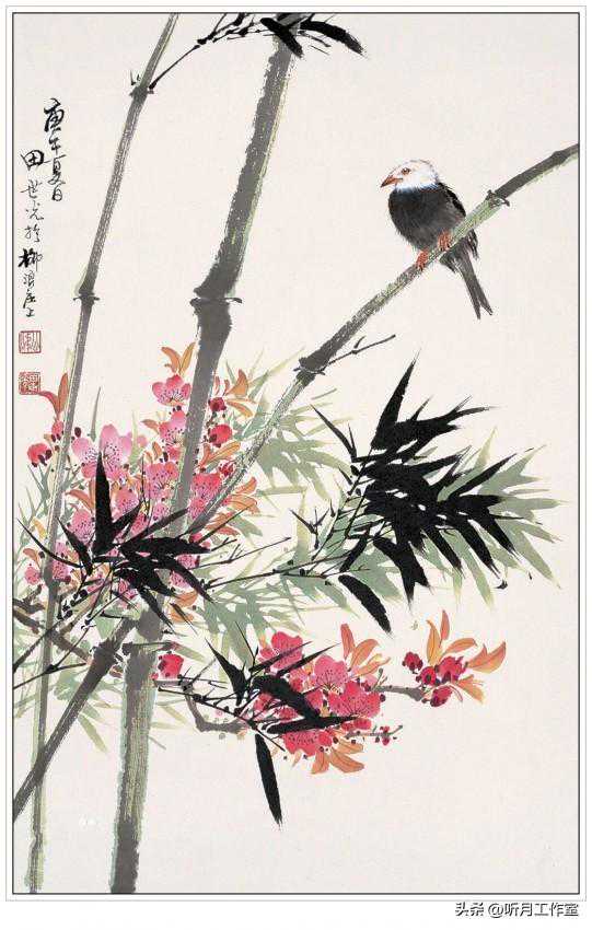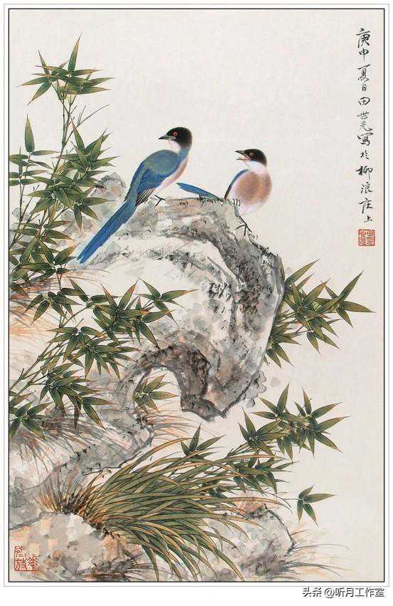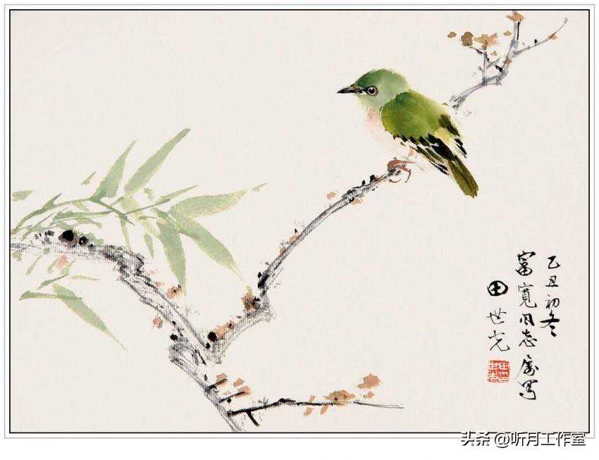 当代著名画家田世光《玉色苔香图》这对当时年仅22岁的田世光是一个很大的鼓励,他的研究探索得到了社会的承认。《竹枝伯劳》是田世光发表于报刊的第一幅作品,以后他的创作便如江河涌流,他的作品也不断在报刊上发表。从这一年起他开始在国画研究馆教课,次年又在京华美专教课。