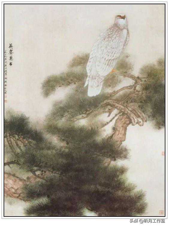 当代著名画家田世光《英姿万古图》纸本,纵180.5厘米,横134.5厘米,1979年作,中国美术馆藏。此作为田世光先生为庆祝建国30周年而作,作品苍松青翠,松树之巅一只白鹰悠然屹立,英姿飒爽,高瞻远瞩。