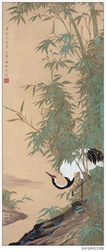 当代著名画家田世光《鹤竹图》1940年先生开始在京华美术学院任讲师,1943年到1945年,在北京国立艺专教课。他治学严谨,创作勤奋,十几年内没在夜里l点钟以前睡过觉。
