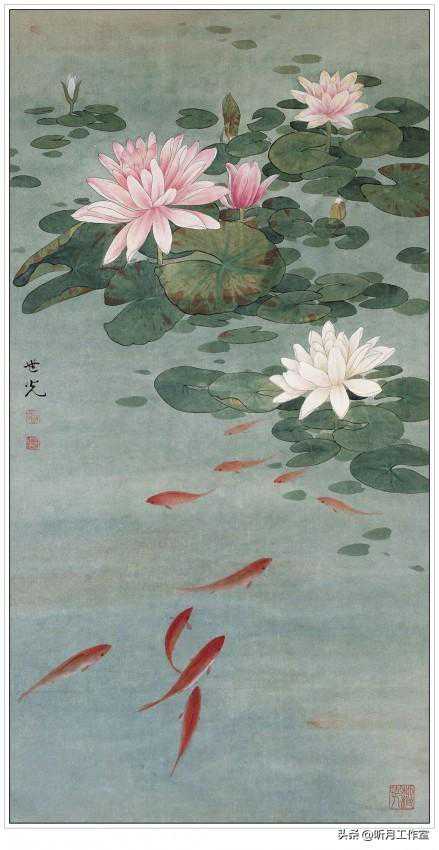 当代著名画家田世光《鱼游图》1973年作。田世光出身于大家族,但在全族中以他家的支脉最穷,幼年常遭到家族中有钱人的白眼,使他痛感“富而不仁”的古语,进生同情穷苦人之心,立志要作出一番事业。