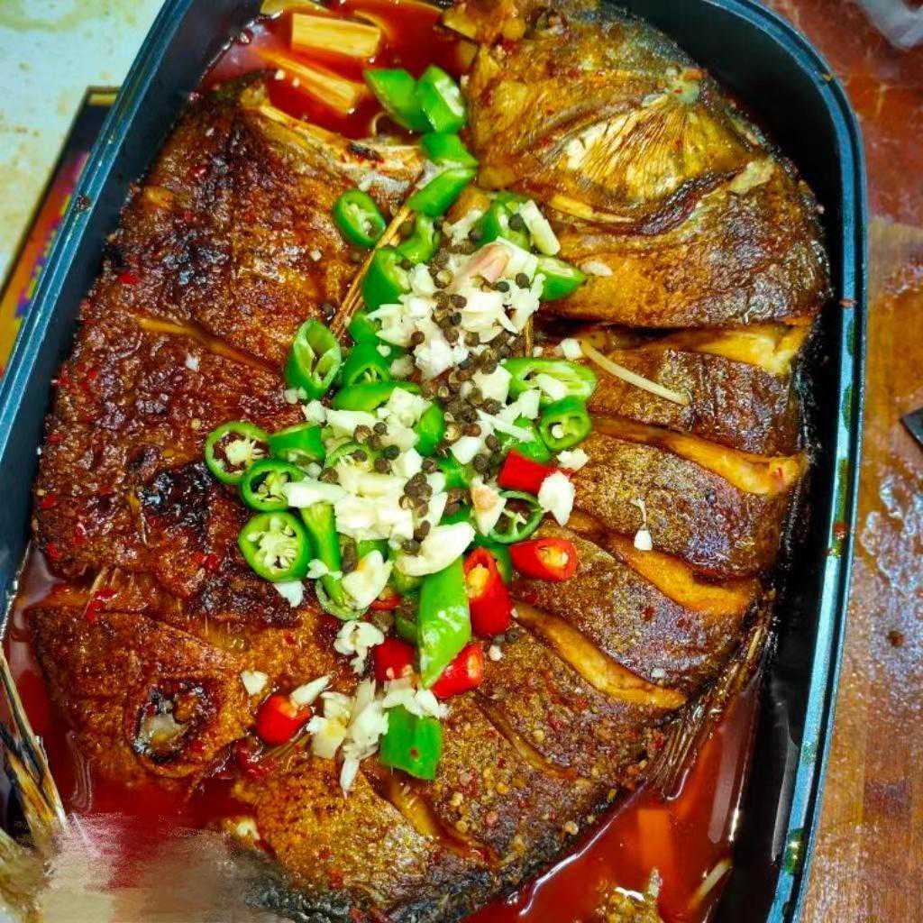 3、鱼的表面和背面撒一层干面粉会更酥脆锅热多放一点油油热下鱼中火煎不要过早动鱼要来回动锅剪到鱼不沾锅图片这种焦焦状态翻面同样方法煎两面煎好然后捞出来(如果家里的锅小那鱼要买小一点不然会烂)
