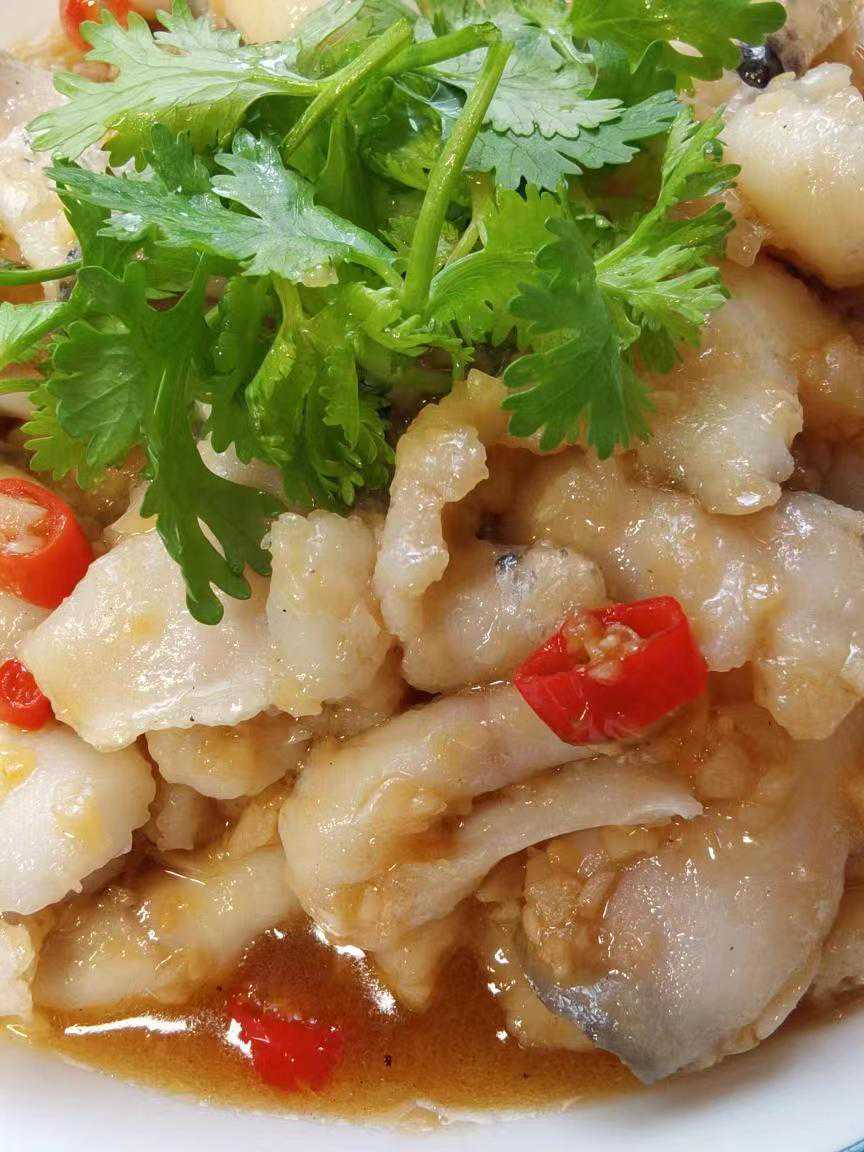 食材准备:鱼片500g,蒜2个,小米椒4个,蚝油1勺,盐1g,糖1g
