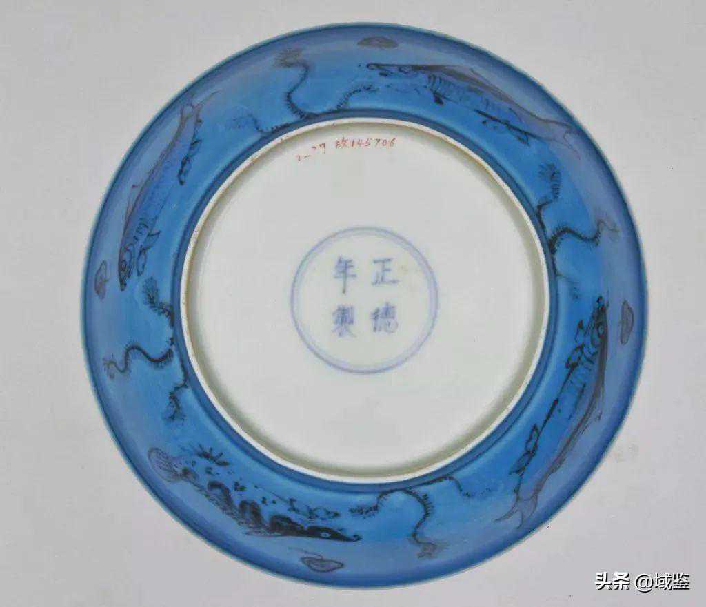明正德孔雀绿釉鱼藻纹盘