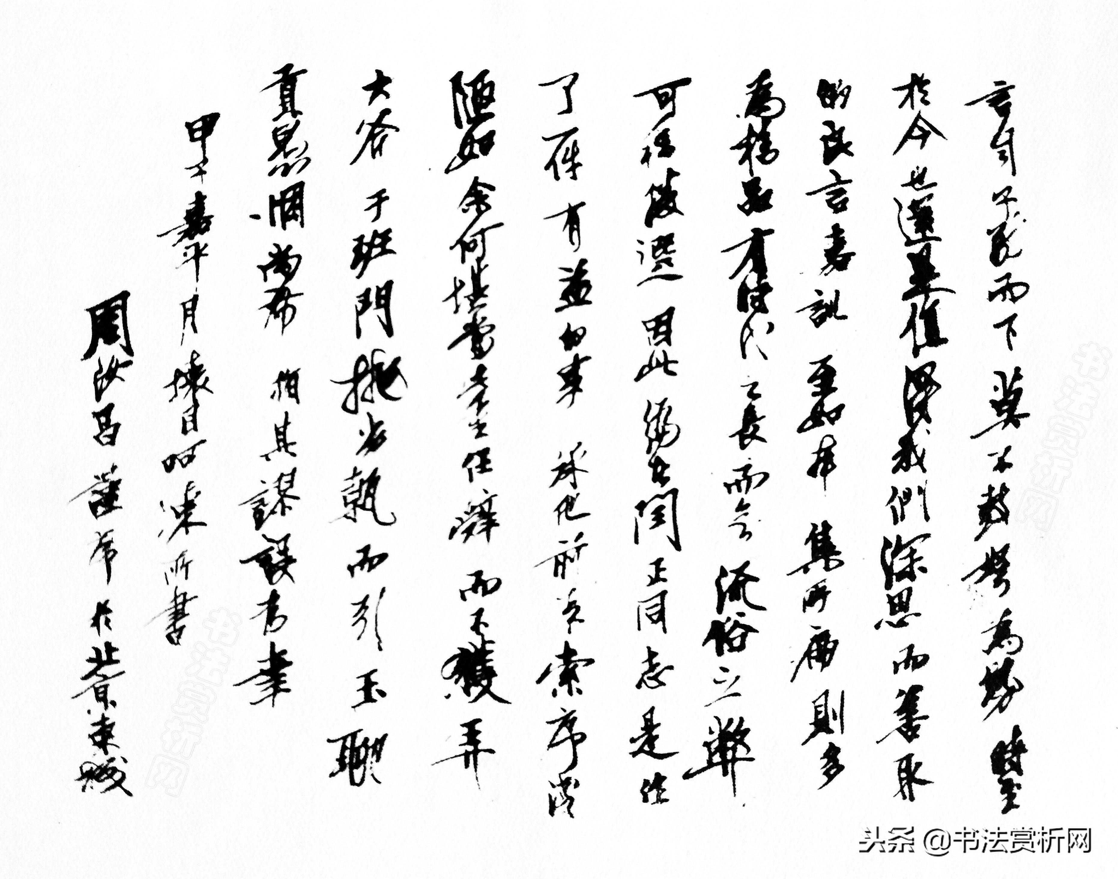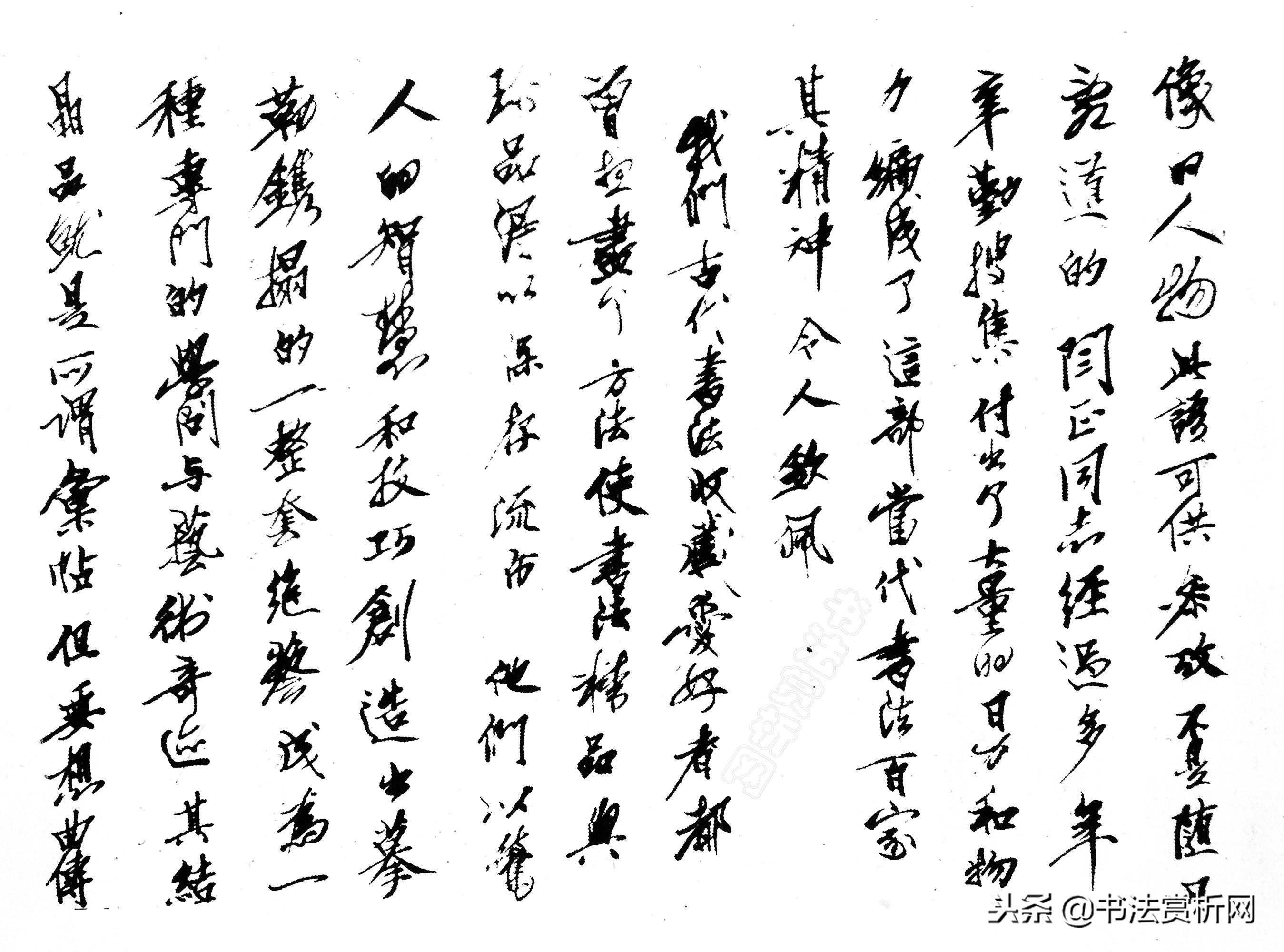 艺术的发展演变,永远与历史背景条件有密切关联,这条件也包括艺坛风尚与社会风气。当代书法的格局风调,从整个来观察,其用笔方法,其规模意度,都还是明清的遗风流韵,还未摆脱它的影响,当然,也不无本身的特点,即时代时期的特征。七长处是纵横豪迈,蹈厉发扬,有奋发激昂之慨,这是有目共赏的。如欲寻其美中不足,那么可以看到一些,就是有时过于追求表面的气势,张扬个性,以致显得张皇造作,媚俗失雅。尤其青中年一代,一味摹仿某些书风,不知刻苦致力于基本功夫,而自以为能。唐孙过庭早曾指出:不激不厉,而风规自远。又言自子敬而下,莫不鼓弩为势。时至于今,也还是值得我们深思而善取的良言嘉训。
