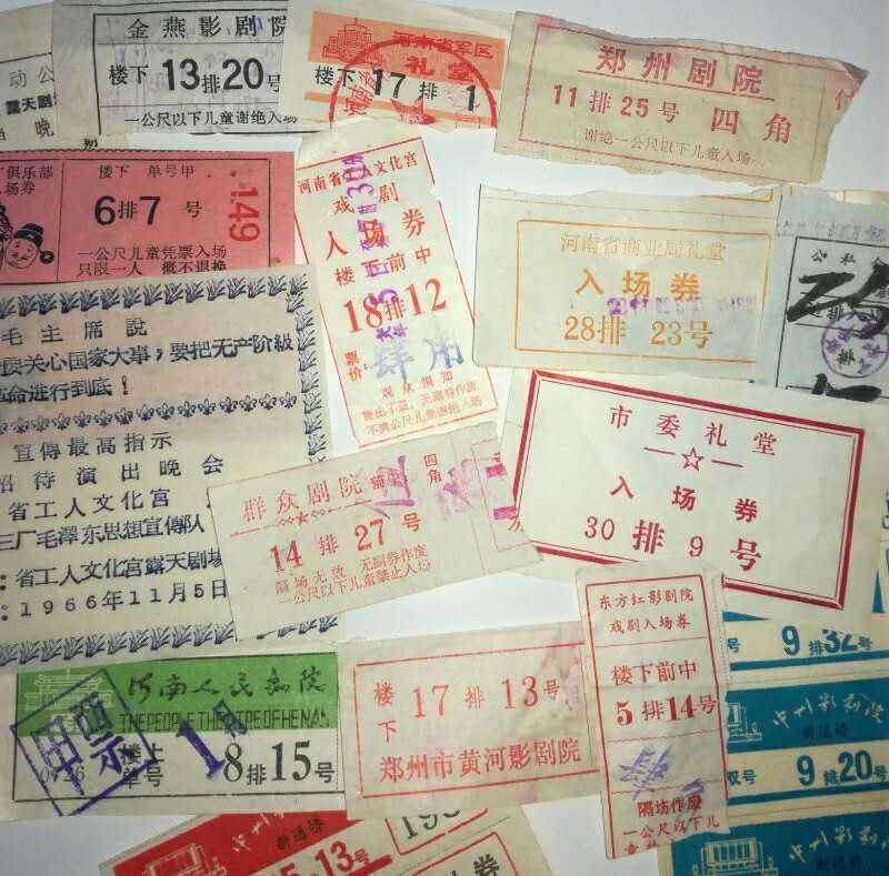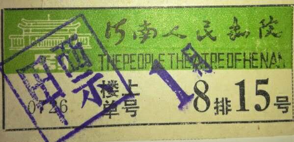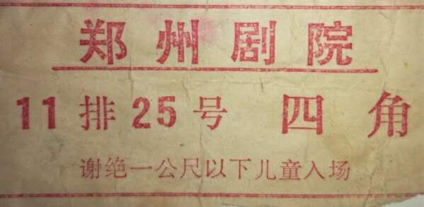 王怀民说,那时,郑州市公私合营的剧院用的是统一门票,几排几号都是用毛笔填写的,老坟岗的几家戏院用的都是这种票。哪家剧院使用要加盖哪家剧院的印章。