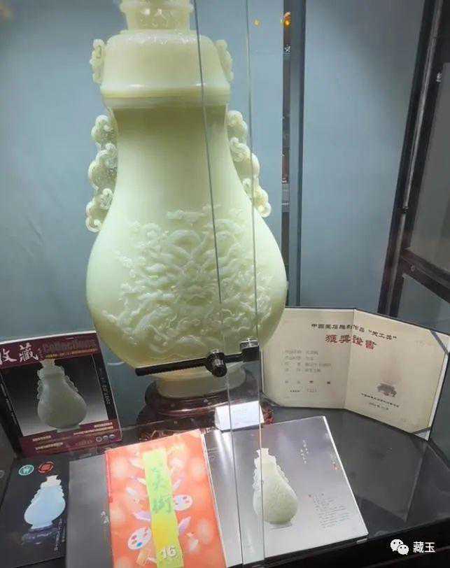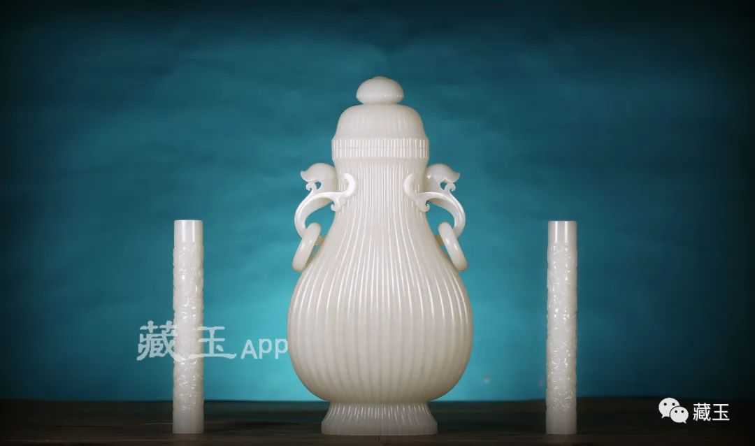 它的块度很大也是一个重要原因。这件器皿高65cm,宽36cm,如此大的器皿件,在当今市场上可谓非常罕见。据说这件作品的原料重达684公斤,名家花了整整两年的时间才完工。