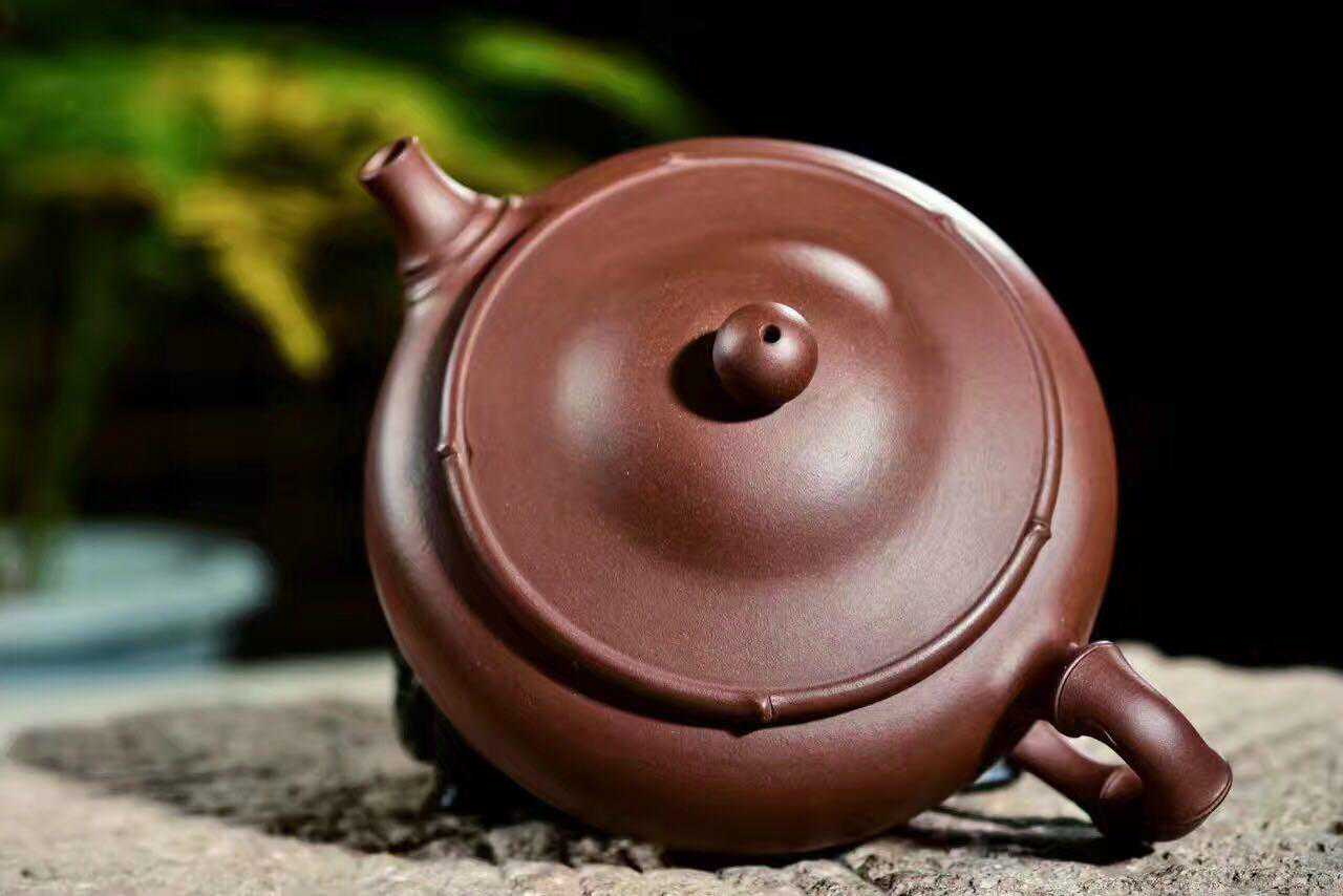 截盖上六条筋纹与壶身的筋纹衔接紧致,子母线凹凸有致,壶韵得到彰显的同时器型的完整性也很好地表达出来,可谓是两全其美。