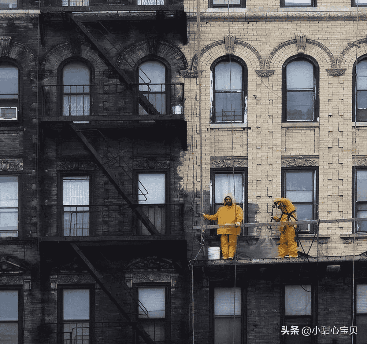 纽约的一栋百年建筑清洁前VS清洁后,原以为黑色是历史的痕迹,没想到是油烟的功劳。