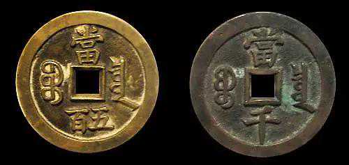 唐高祖武德四年(公元621年),开铸“开元通宝”,取代社会上遗存的五铢,形制仍沿用秦方孔圆钱,规定每十文重一两,每一文的重量称为一钱,而一千文则重六斤四两。“开元”为开新朝新币之元意,“通宝”意即通行宝货。开元通宝钱的铸行在中国货币发展史上标志着五铢钱的结束和通宝钱制的开始,成为唐以后历朝的铸币标准,并沿袭近1300年。