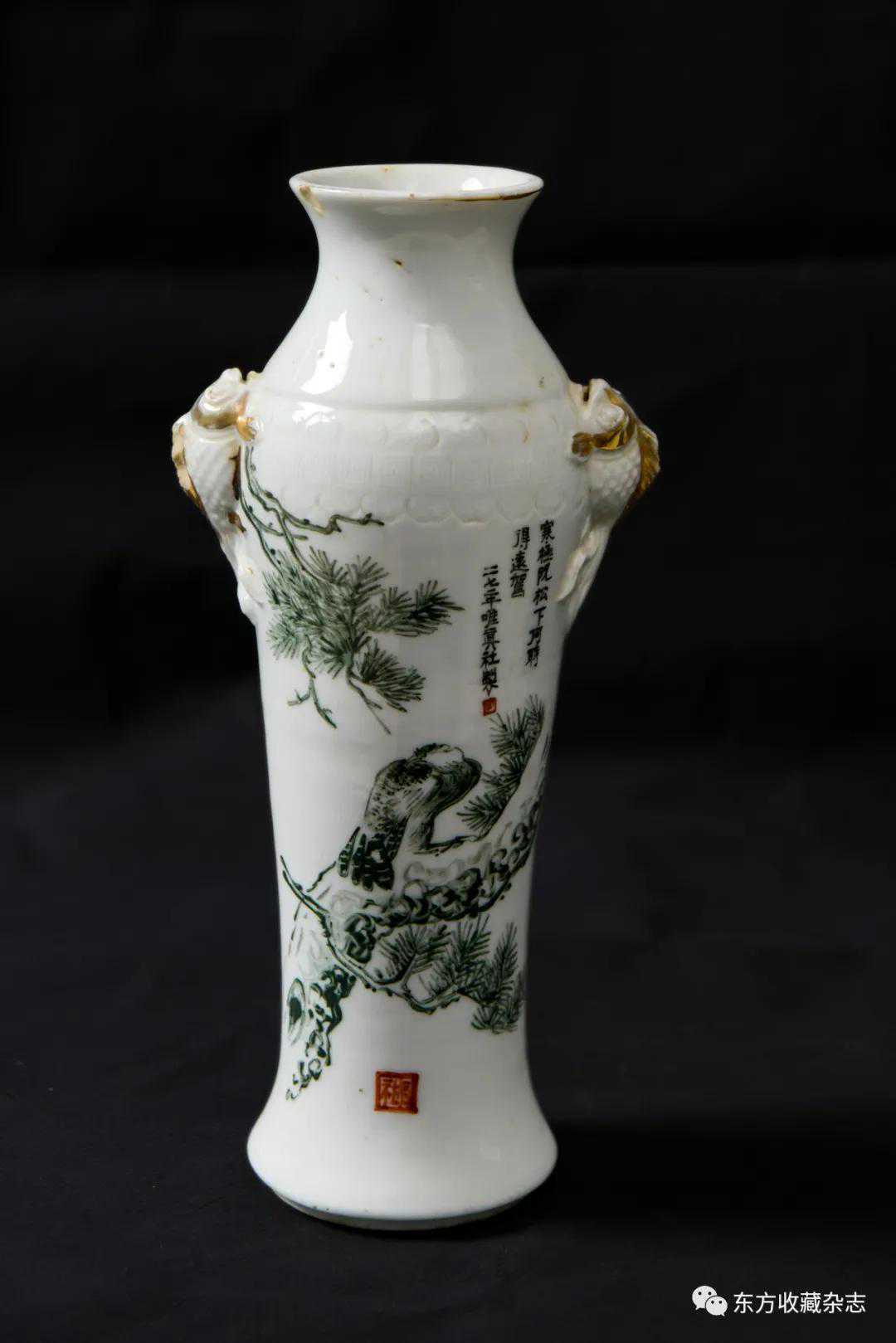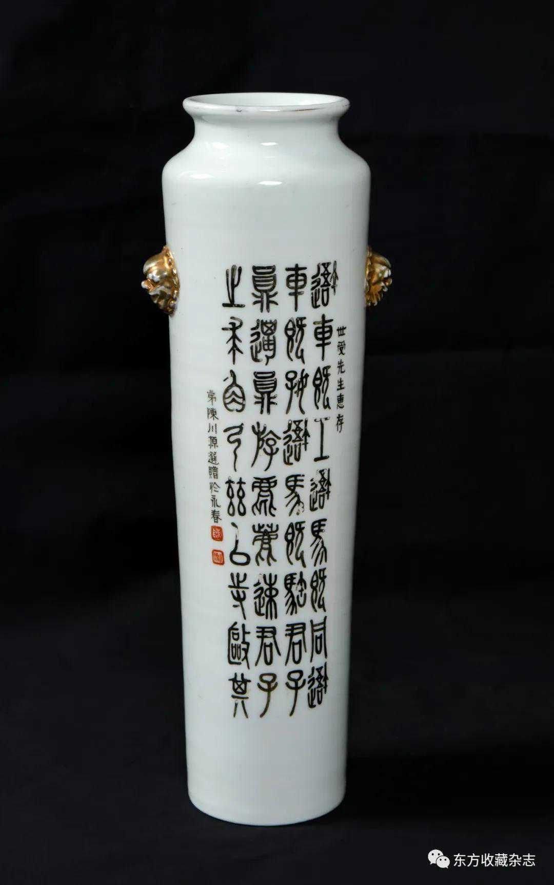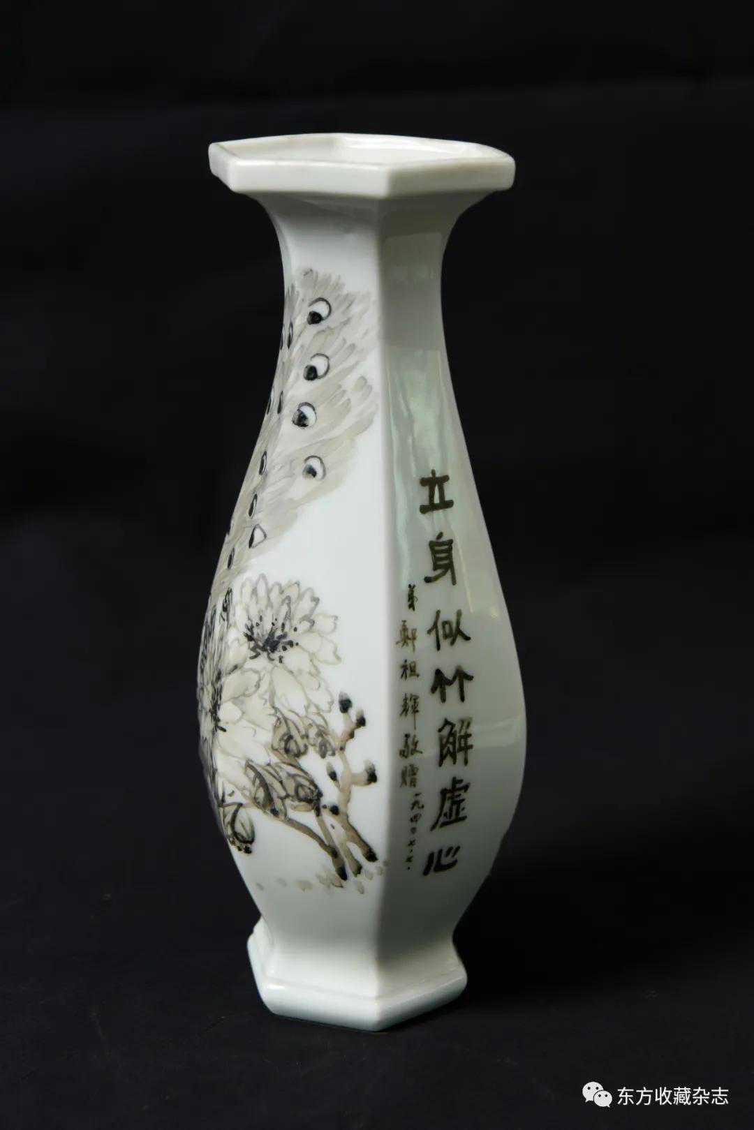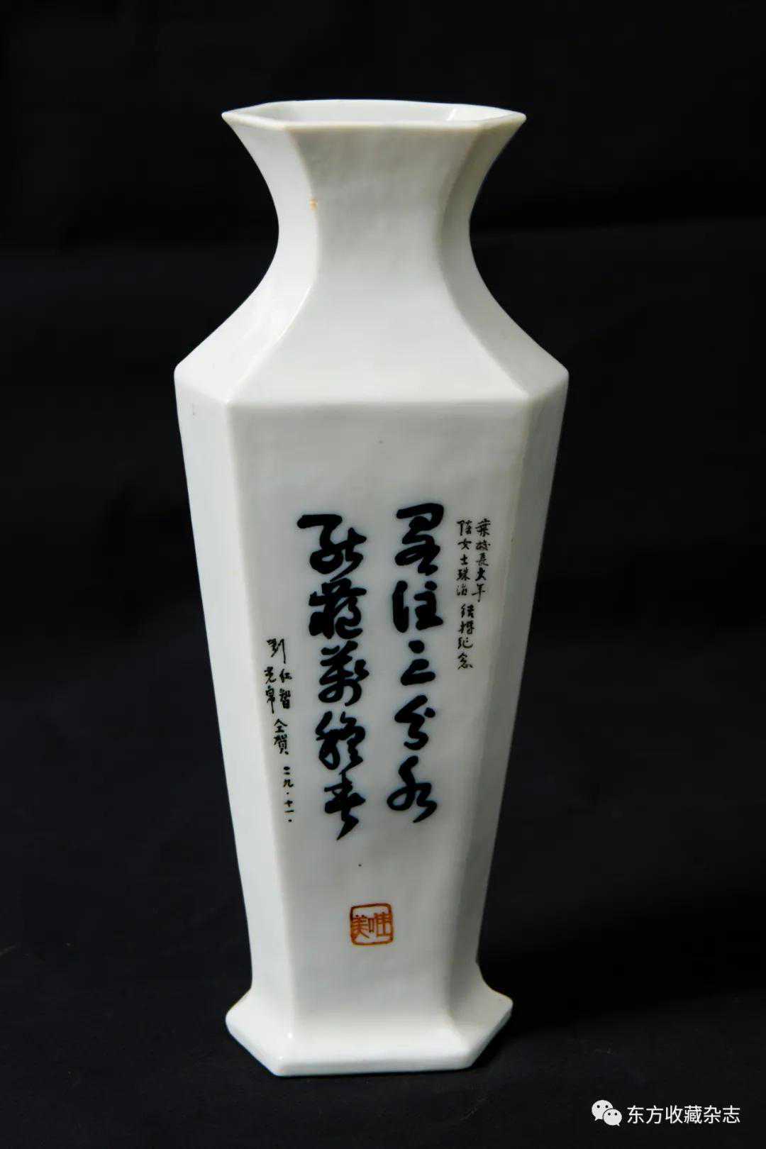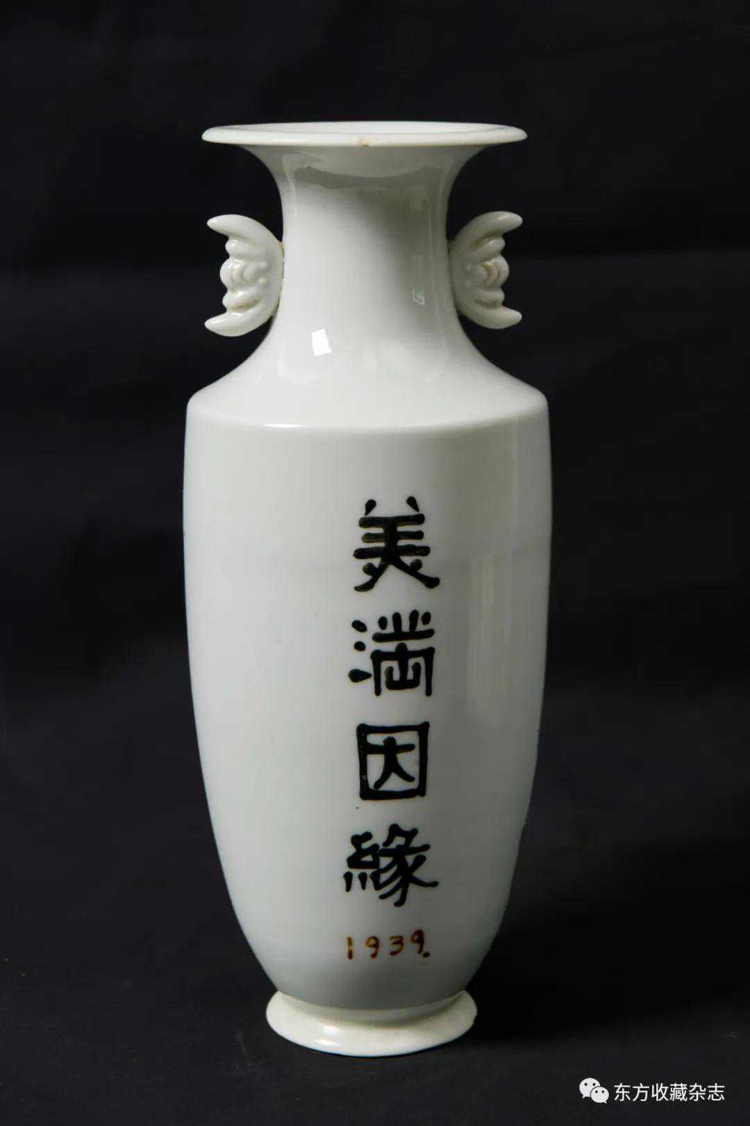 此外,在四大瓷社传世的各类作品上我们还发现大量专门定烧的铭款,说明当时除生产各类大宗产品外,他们还接受有关个人、名人、堂号主人乃至祠堂、宗祠等的私家定烧,如时任永春县图书馆馆长、弘一法师在永春期间的执事弟子王锦机、永春崇贤中学原校长叶大年等均见有定制品传世,多用于婚庆、祝寿、活动纪念、私人交往等馈赠用途,这些也充分说明了它们在当时的影响性。与此同时,这一时期四大瓷社生产的作品,多喜题字、题诗,也由此涌现了一批瓷绘名家,如江西·福建分卷收录的釉上五彩丹凤朝阳图筒瓶,器身描绘一轮红日下凤鸟飞舞的场景,其左上角题“丹凤朝阳,民国二十六年(1937)春画于桃源三美瓷学社”。另外一侧临石鼓文开篇“吾车既工,吾马既同。吾车既好,吾马既阜。君子员猎,员猎员游。麀鹿速速,君子之求。骍骍角弓,弓兹以寺。吾驱其特”,无论绘画或是书法都十分精彩。而这些,都出自当时永春窑著名的书法、瓷画名家陈尧民之手,他创作经验丰富,造诣深厚,作品文人气十足。第八批全国重点文物保护单位永春岵山福兴堂里边留有其大量的珍贵墨迹。从其传世陶瓷制品来看,画面内容清晰洒雅,光泽莹润,别具韵致,并且将中国文人画诗、书、画、印于一体的审美艺术形式、审美旨趣、艺术表现形式应用到陶瓷绘画、书法创作之中,给当时的陶瓷艺术带来了新的活力,实乃当时永春窑陶瓷装饰艺术的一大特色,较之同一时期德化窑乃至景德镇窑的瓷绘艺术,都毫不逊色。
