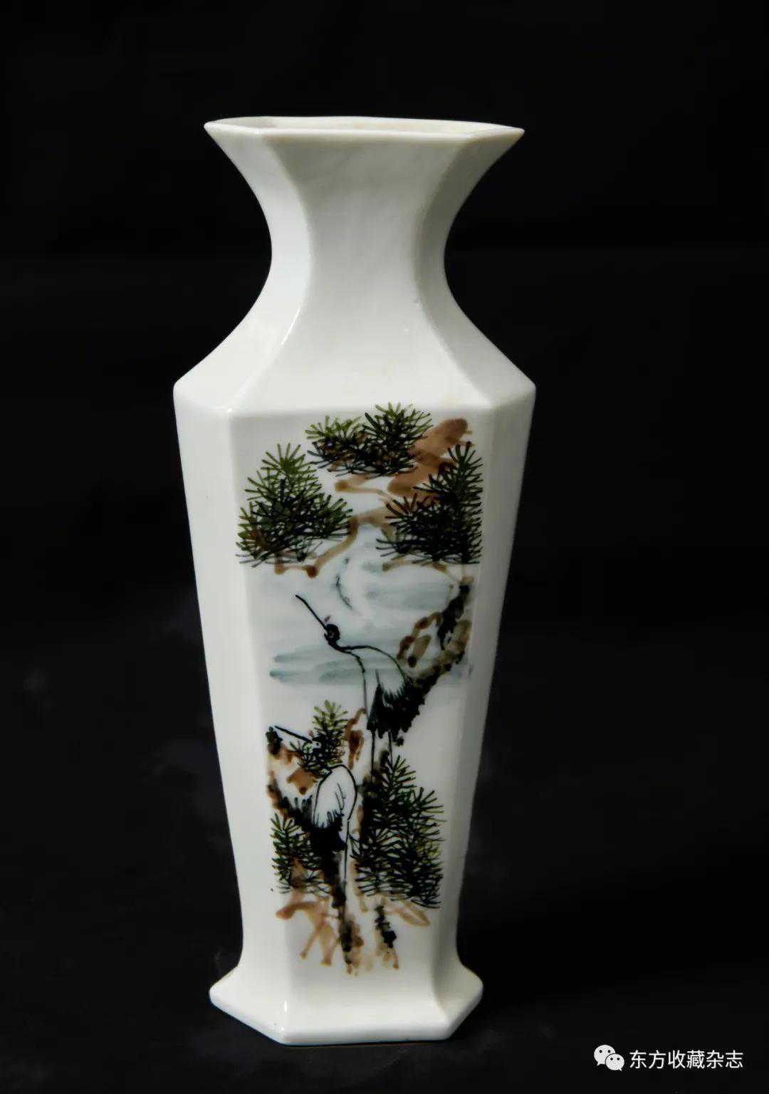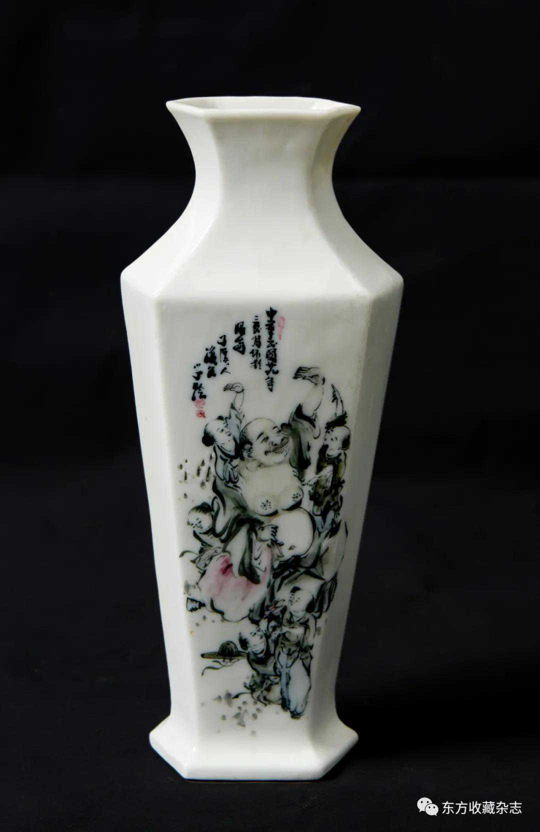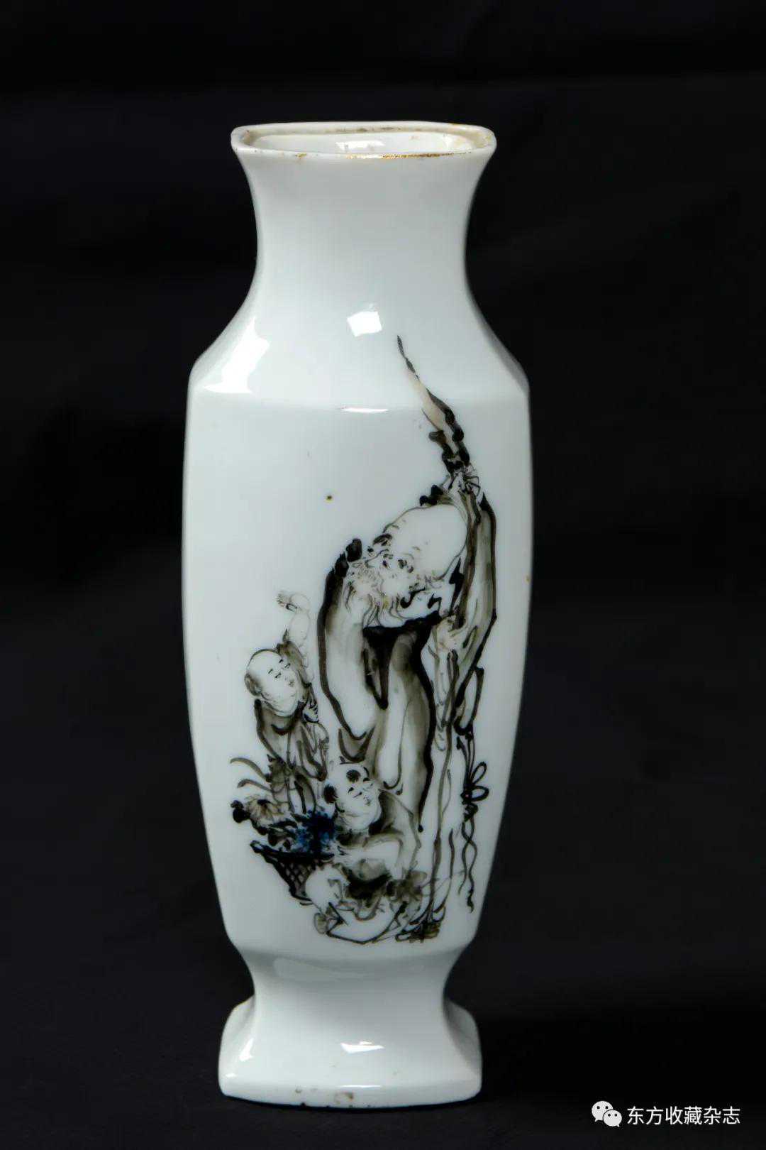 釉下彩渔翁六角瓶