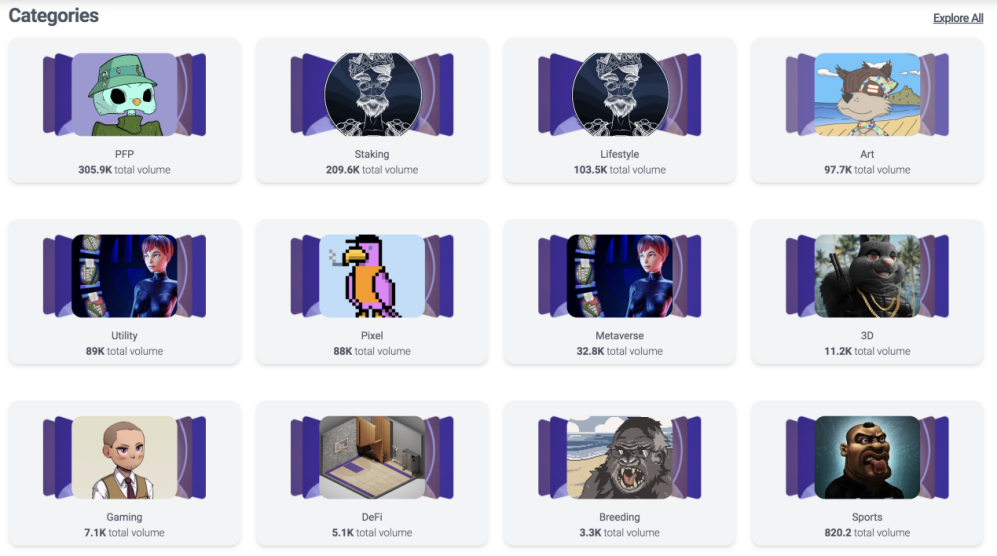 据数据显示,NFT市场近期的总交易额已达600亿美元,持有者总量已接近250万。其中PFPNFT市值遥遥领先,约为132亿美元。目前热门收藏排名前三的NFT项目是CryptoPunks、BoredApeYachtClub、Otherdeed,