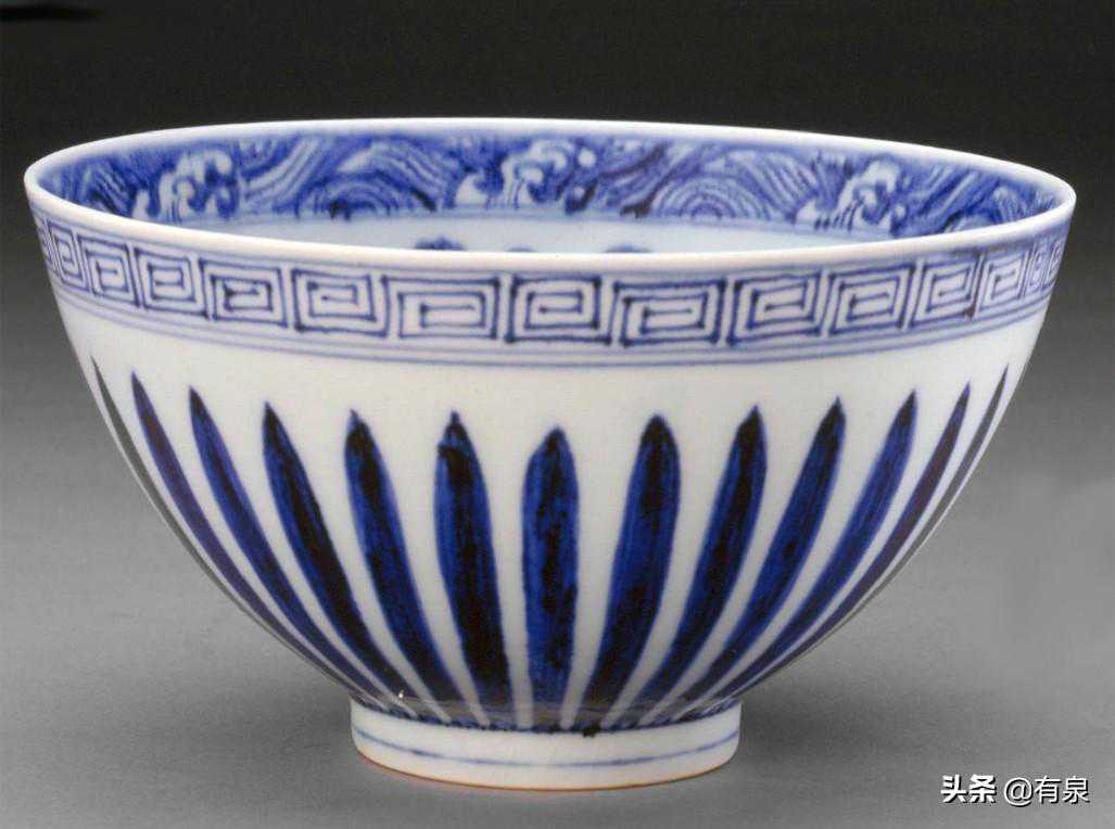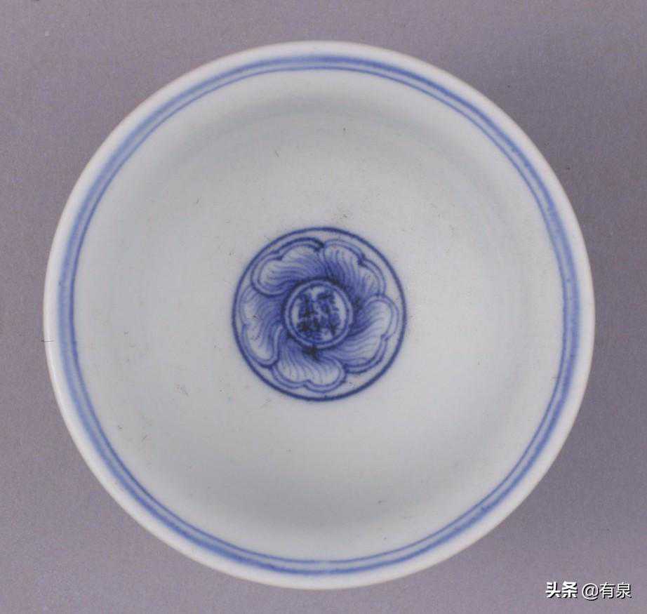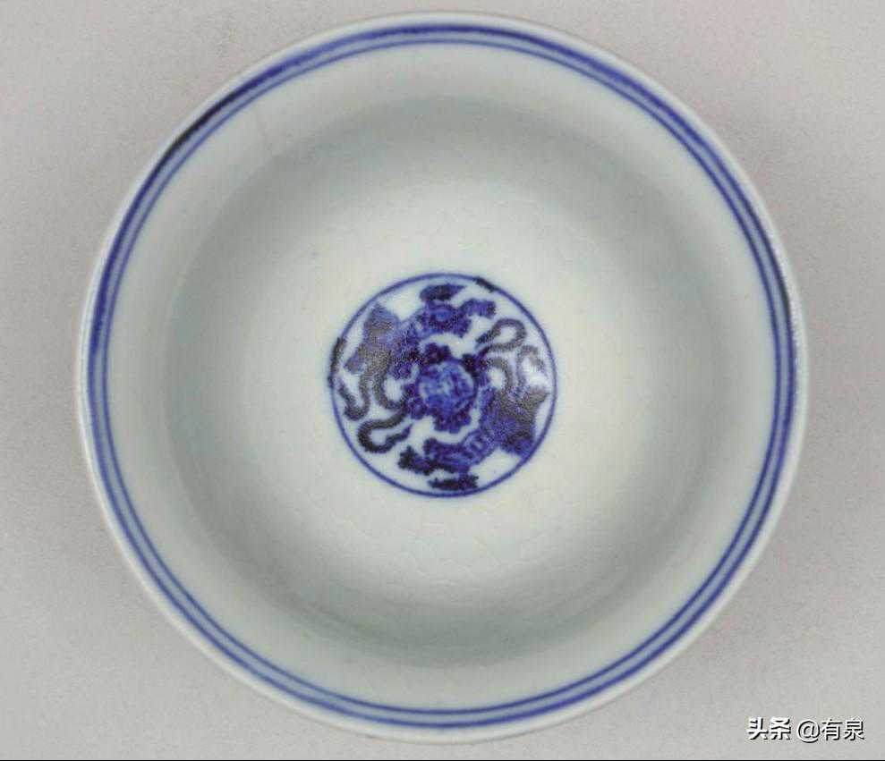 鸡缸杯敞口卧足,器形上叫成化杯,画面是斗彩。因为前几年拍卖了近两亿,搞得路人皆知,其实这种杯无论画面还是器形,都乏善可陈。真正有划时代意义的,是此前永乐皇帝用的压手杯。压手杯标志着青花瓷首次成为皇室日用瓷,从此彩绘瓷器开始被上层社会接纳,与颜色釉瓷分庭抗礼。压手杯撇口,唐宋也出现过小撇口盏,个人感觉是烧造时变形的原故。压手杯的撇口明显经过深思熟虑的设计,拿杯时正好压在虎口上,所以叫“压手”,喝茶时,撇口又舒服地搭在嘴唇上,古代人体力学的典范。另一个解释是,压手杯胎体厚重,拿着沉,故名“压手”。按明代《博物要览》记载,永乐压手杯杯心画面有三种,鸳鸯、狮子、团花,现在鸳鸯的画面散了,只剩下狮子和团花,全在宫里。
