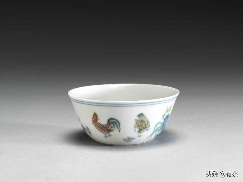 口径与高度相仿的曲腹圈足杯叫盅,多作酒杯。铃铛杯是少数几种高度超过杯口直径的杯之一,也是明代出现的,因为这种杯高,清代多用粉彩画站立人物。马蹄杯平底,形如马马蹄,明代的多为单色釉,清代多画斗彩。鸽形杯和爵杯仿青铜器,不实用,当玩具。