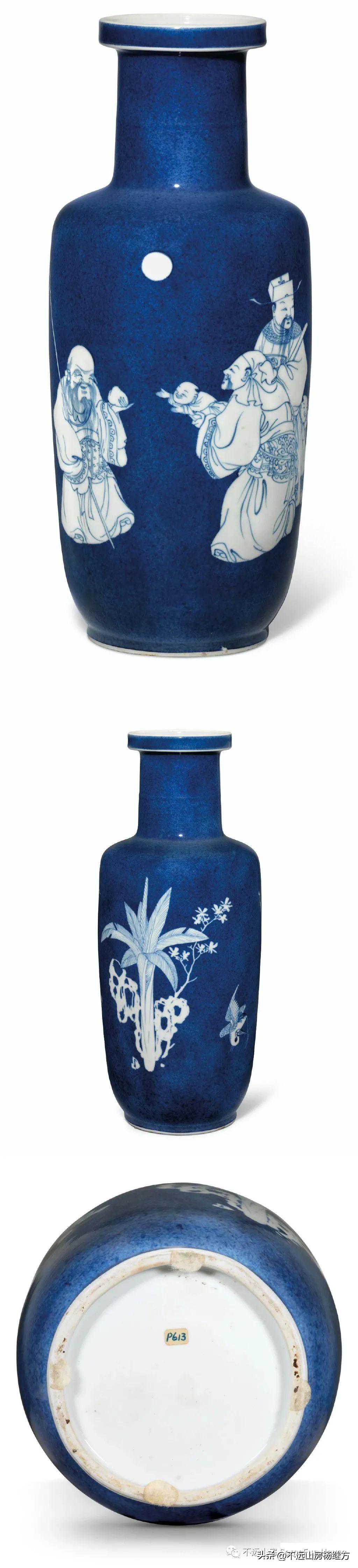 巴黎佳士得2020春的康熙洒蓝釉青花福禄寿三星图棒槌瓶
