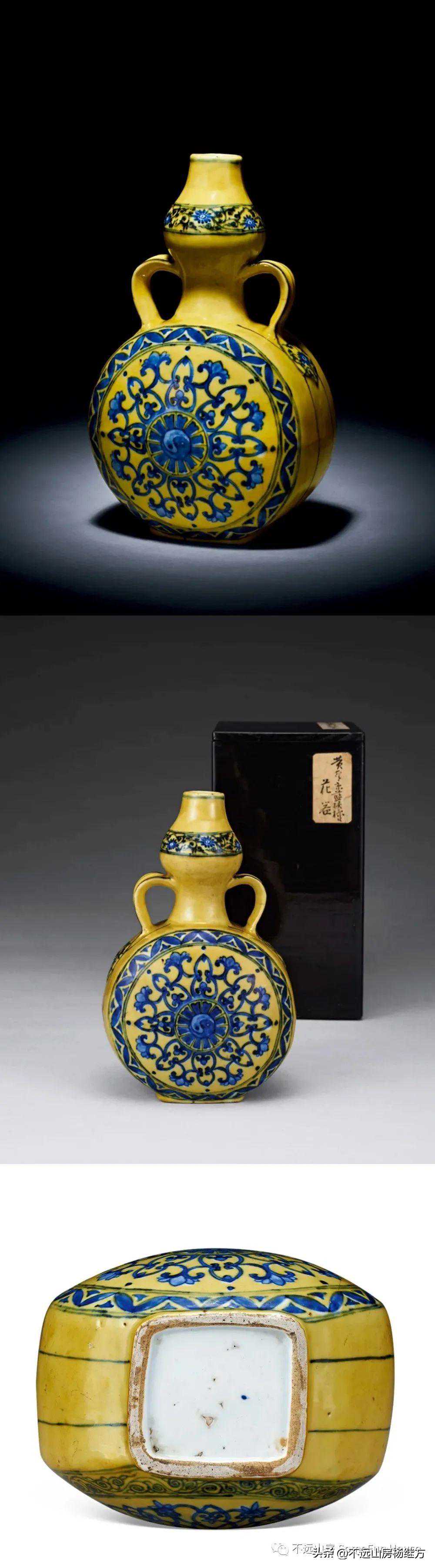 东京中央2021年春拍的茧山龙泉堂旧藏康熙仿宣德黄地青花绶带耳葫芦瓶