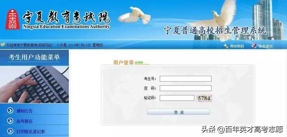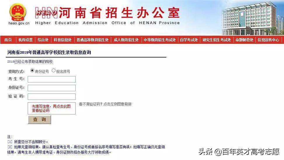 考生登录河南省招生办公室