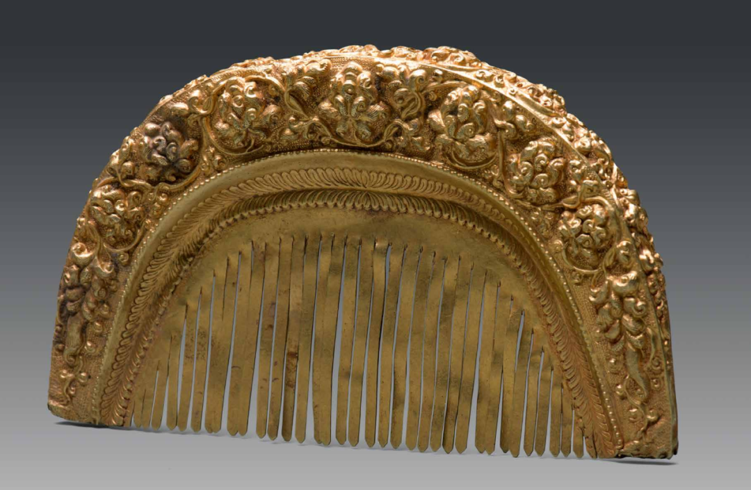 缠枝莲纹金梳,北宋,易县文物保管所藏