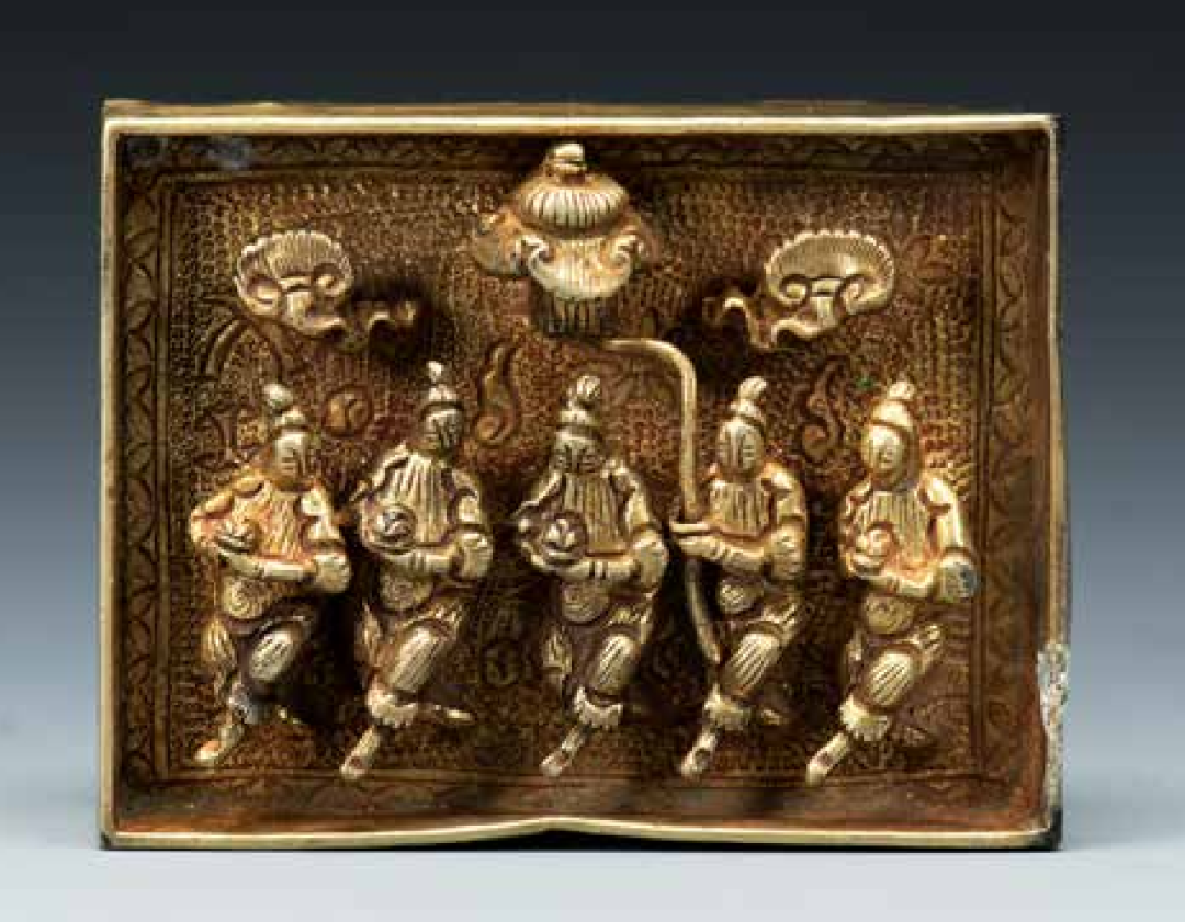 据成都博物馆资料介绍,1986年,河北易县大北城出土了一批窖藏辽宋时期的金银器及玉器、琥珀、水晶等制品共四百余件。金银器主要包括酒器、饰品及百余枚金叶子和十八枚银锭,其中不乏梳篦、耳环、金五佛冠等珍贵或鲜见器物,可视作北宋以及融合辽宋风格的金银器标本。