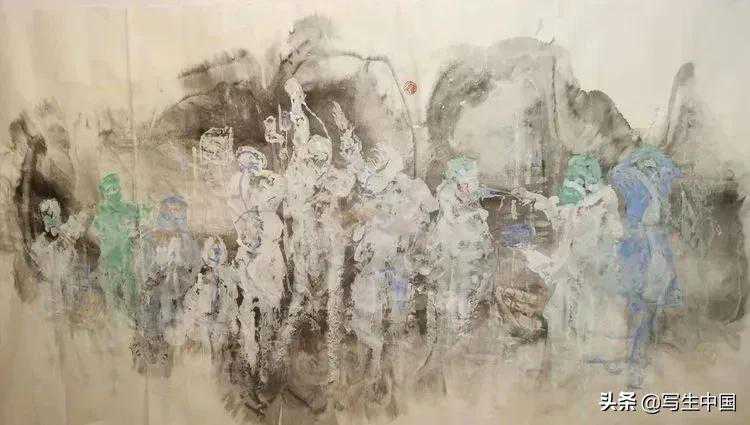 《全民动员,打胜疫情防控人民战争》中国画苏振福