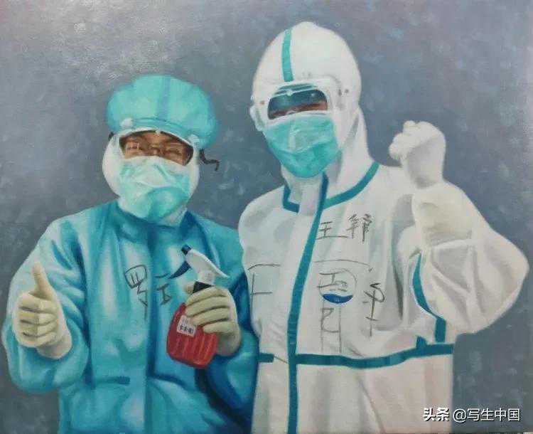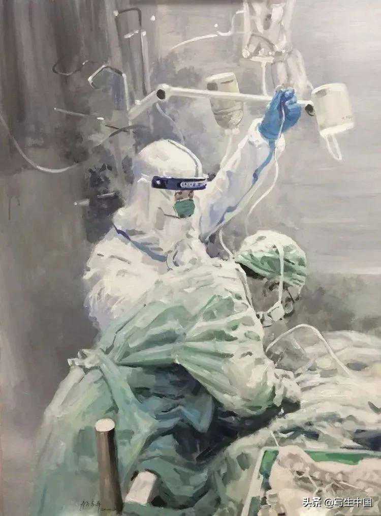 《拿画笔的抗疫战士》中国画蒋洪亮