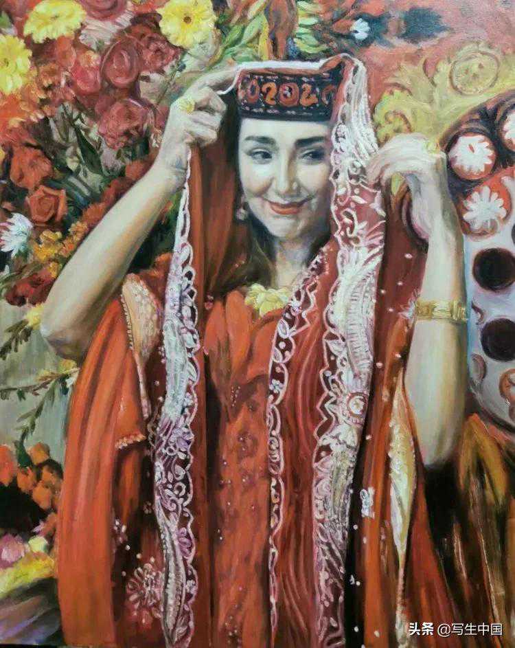 《胡杨树下》油画180×130cm努尔买买提·俄力玛洪