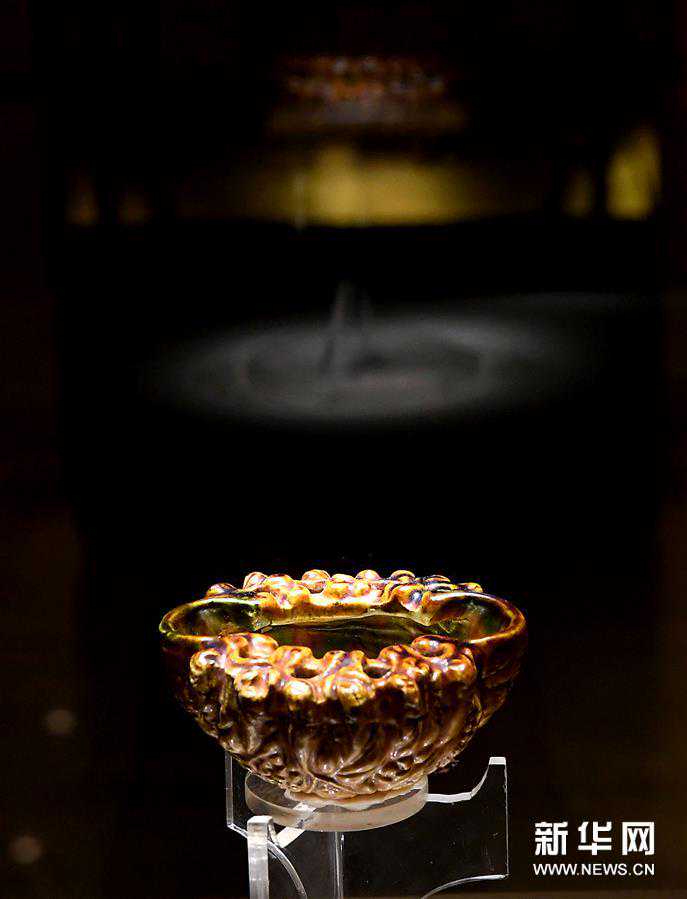 这是6月19日在河南省巩义市博物馆拍摄的“三彩杯”。新华社记者李安摄
