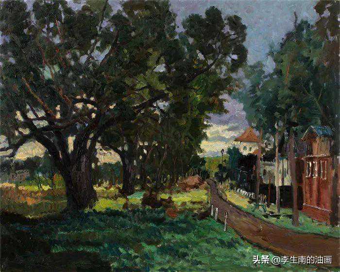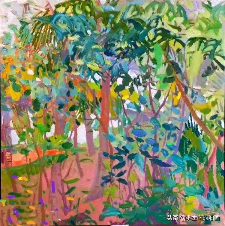 李生南《三亚的椰树林》油画80x80cm