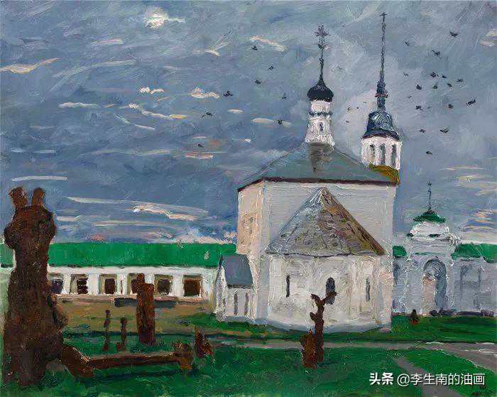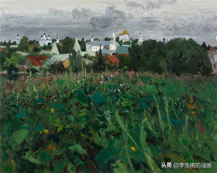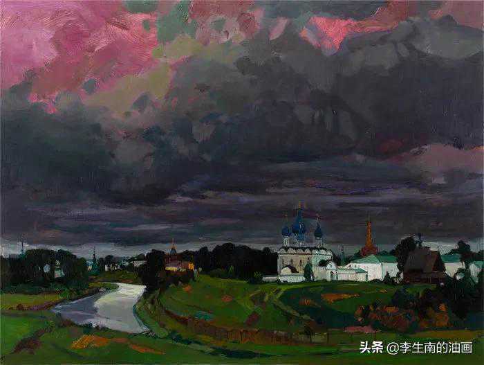 余丁《列宁广场的黄昏》100×80cm油画2019
