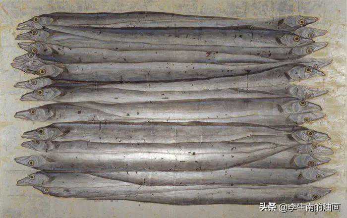 赵洁《鱼》纸本重彩-银箔矿物质颜料-120×200cm--2002年