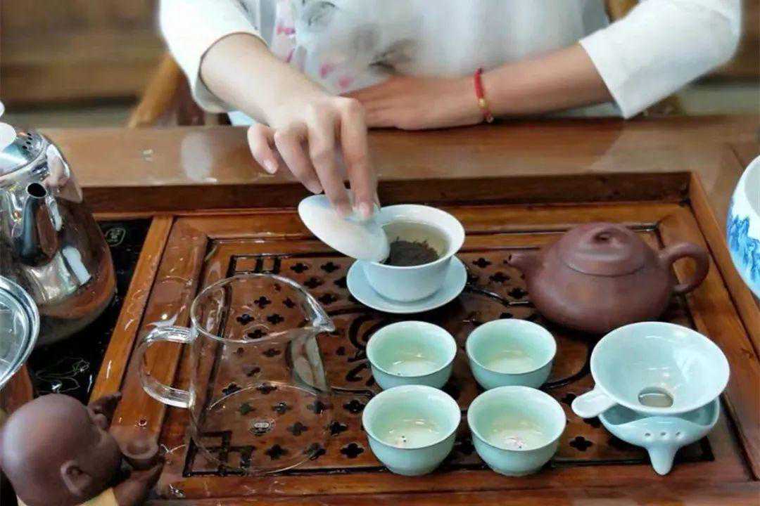 把茶叶放到器具里,也就是放茶过程,把茶叶放到茶壶里,名字叫的好听,程序简单,表演可以适当加入花式,更具有茶韵。