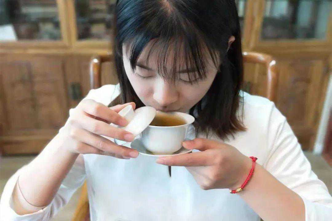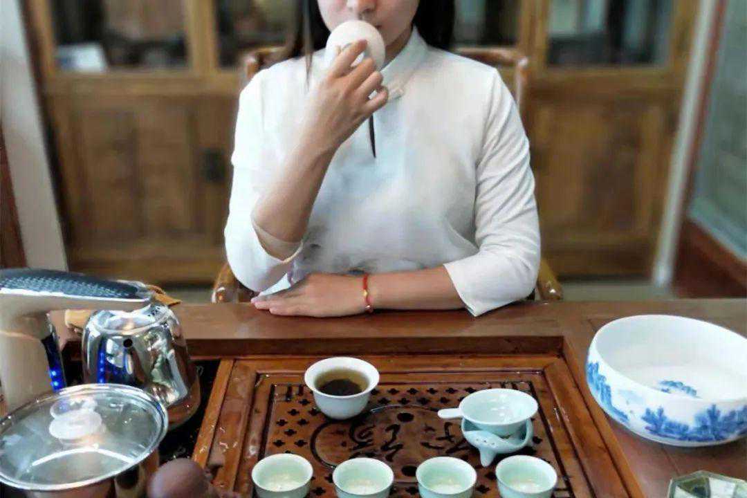 这个是客人开始独自感悟的步骤,客人将茶汤倒入品茶杯,轻嗅闻香杯中的余香,最好能有陶醉状,表示对主人茶的欣赏和赞叹。