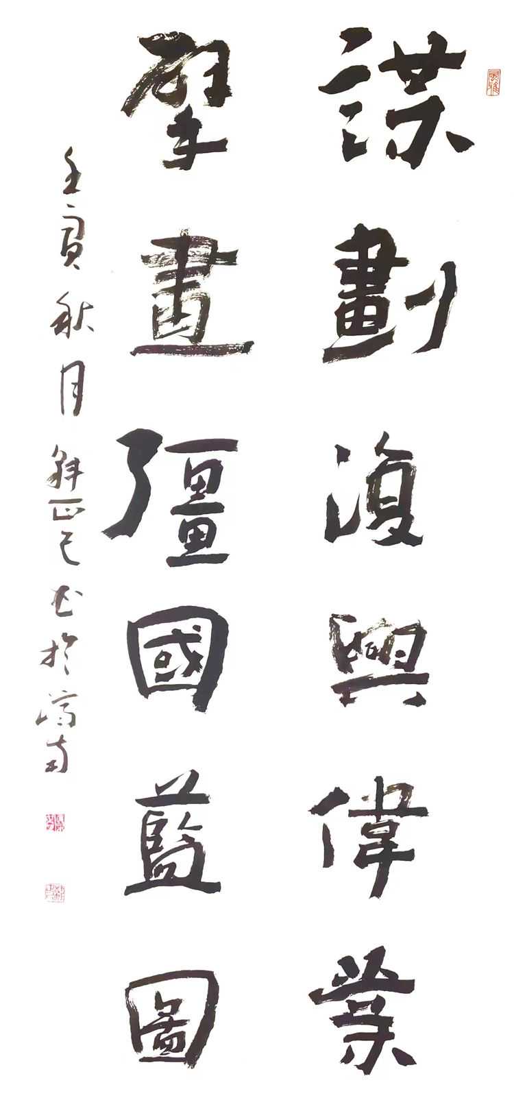 《对联》下联作者:耿世彪,中国书协会员、济南市工商联文联副主席、济南市工商书协主席、天桥区书协副主席兼秘书长