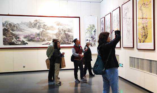 现场看到,东城区书画协会副主席耿军的画作《花鸟》,中科院文联主席郭曰方的书法作品《水墨情韵最美桃乡》;中科院院士、数学家严加安的书法作品;军旅画家、海军政治部创作室创作员甘长霖的画作《玉兰飘香》;山水画家、中国名家书画院副院长史贵仁的画作《青山花正艳》;中国美协艺委会秘书处处长杨悦浦的画作《古今一瞬》;军旅画家张福盈的画作《戏秋》;冰雪书画研究院院长赵春秋的画作《雪景》;中科院书画家集体创作的大型巨作《鸟语花香》等。中科院美协主席、平谷本地画家周春民特意为此次书画展创作的画作《鸣春图》,油画《周庄印象》三部曲,作品体现了周老师对家乡浓浓的热爱,吸引诸多书画爱好者在前拍照品鉴。